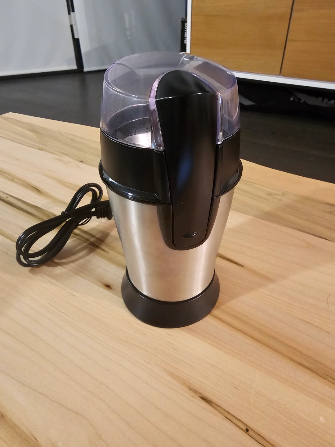 ill be moving soon, and im giving away a few items, including this Compact electric coffee grinder. Stainless steel body, black top. Includes power cord.