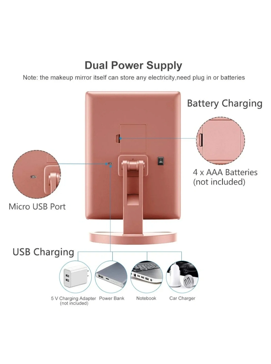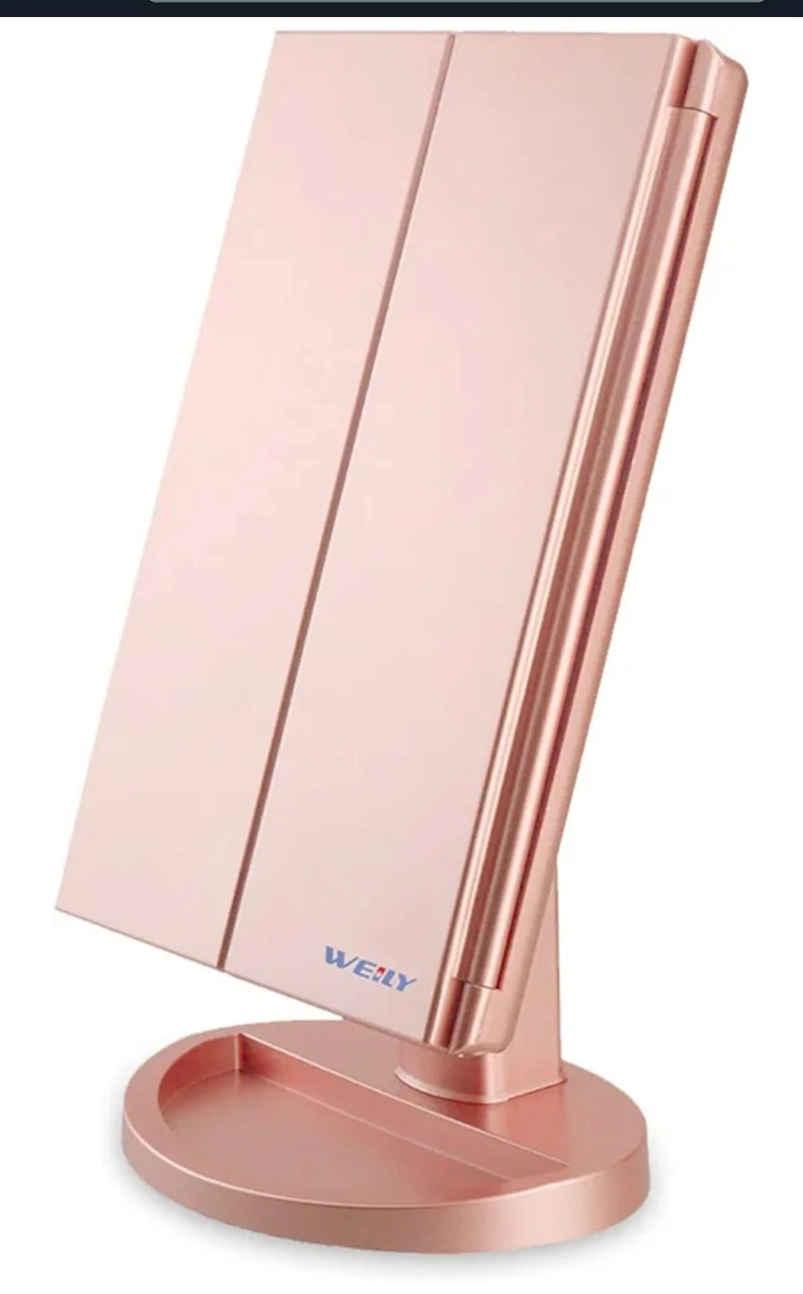 Rose Gold Tri-fold LED Vanity Mirror with Stand