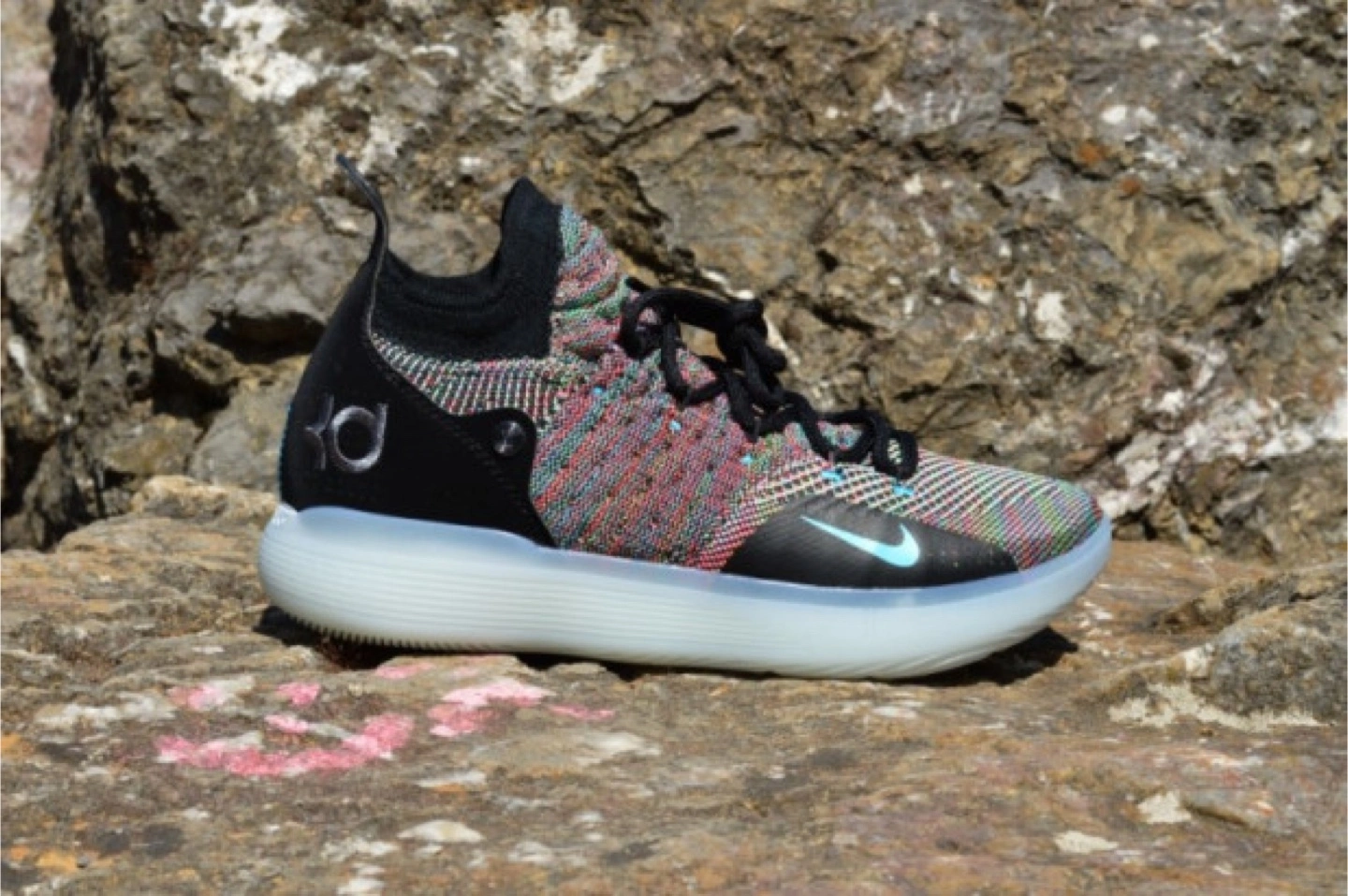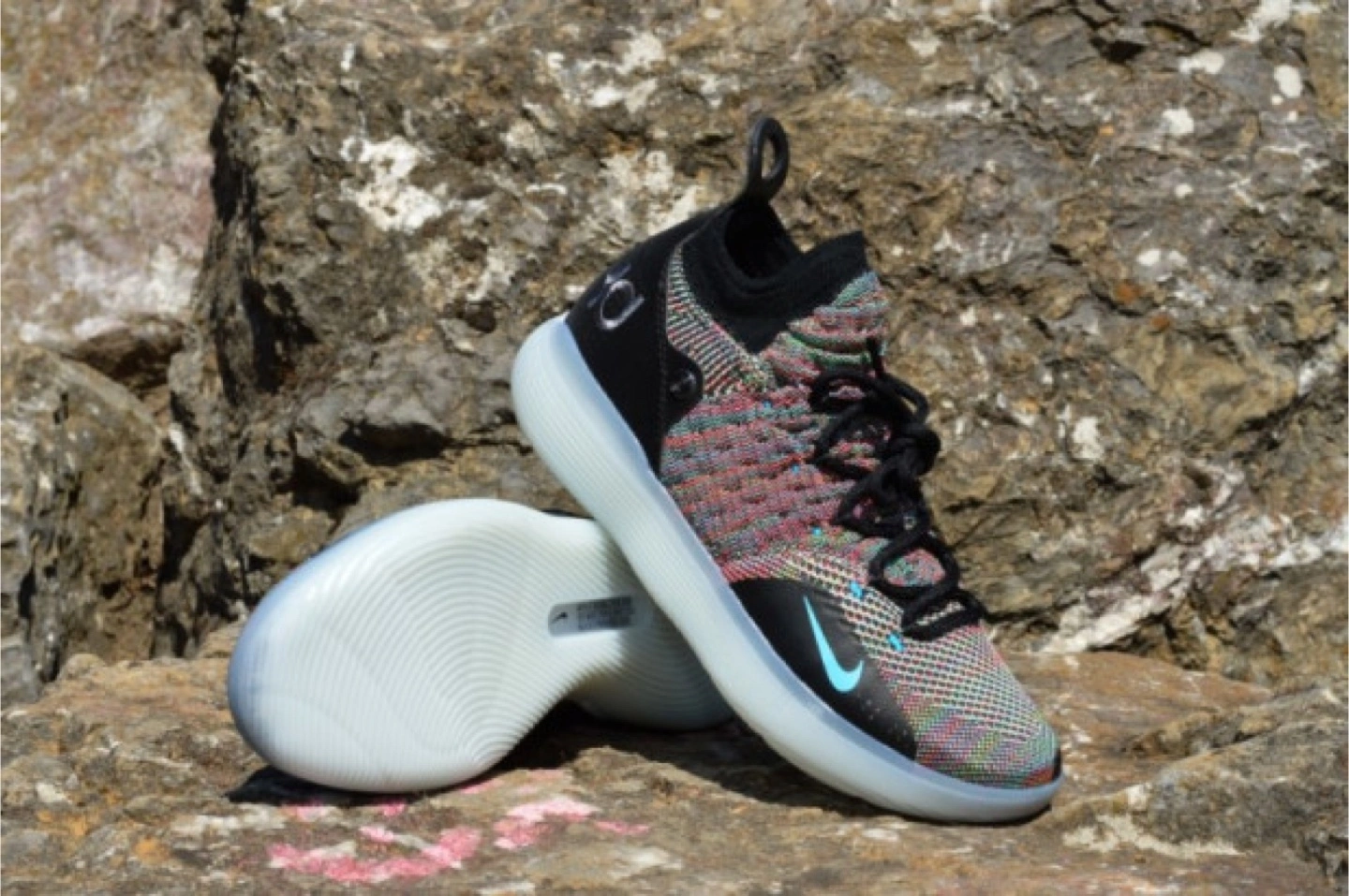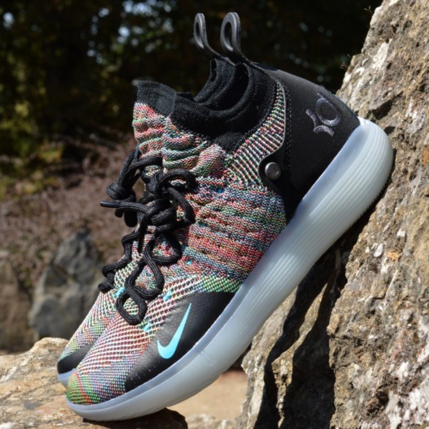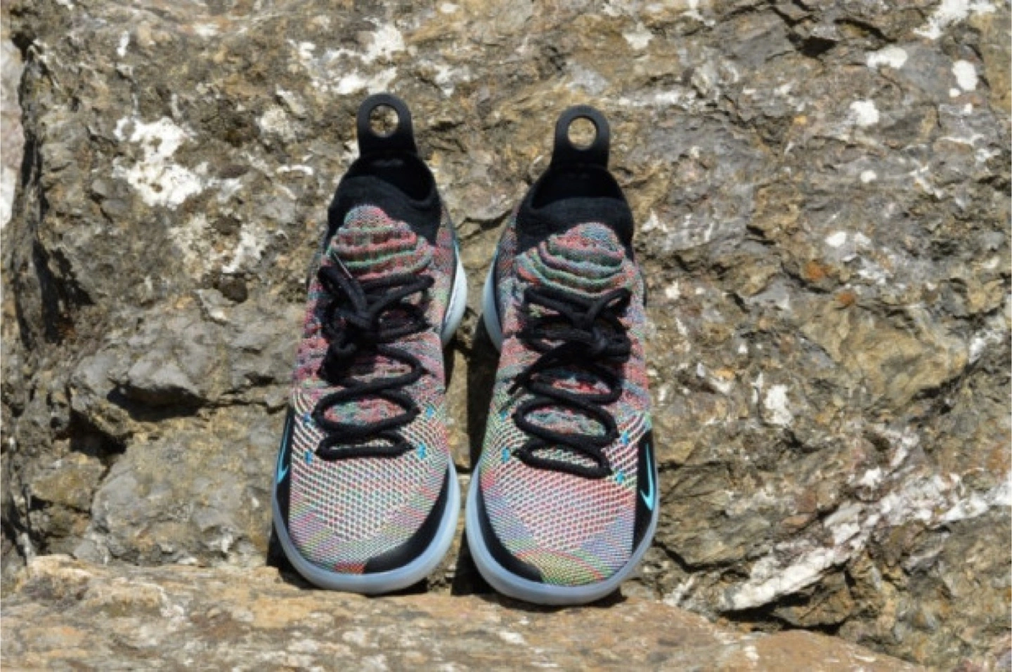 Men's Nike KD 10 basketball shoes. Multicoloured knit upper. Lightweight cushioning. Great for the court or casual wear.
