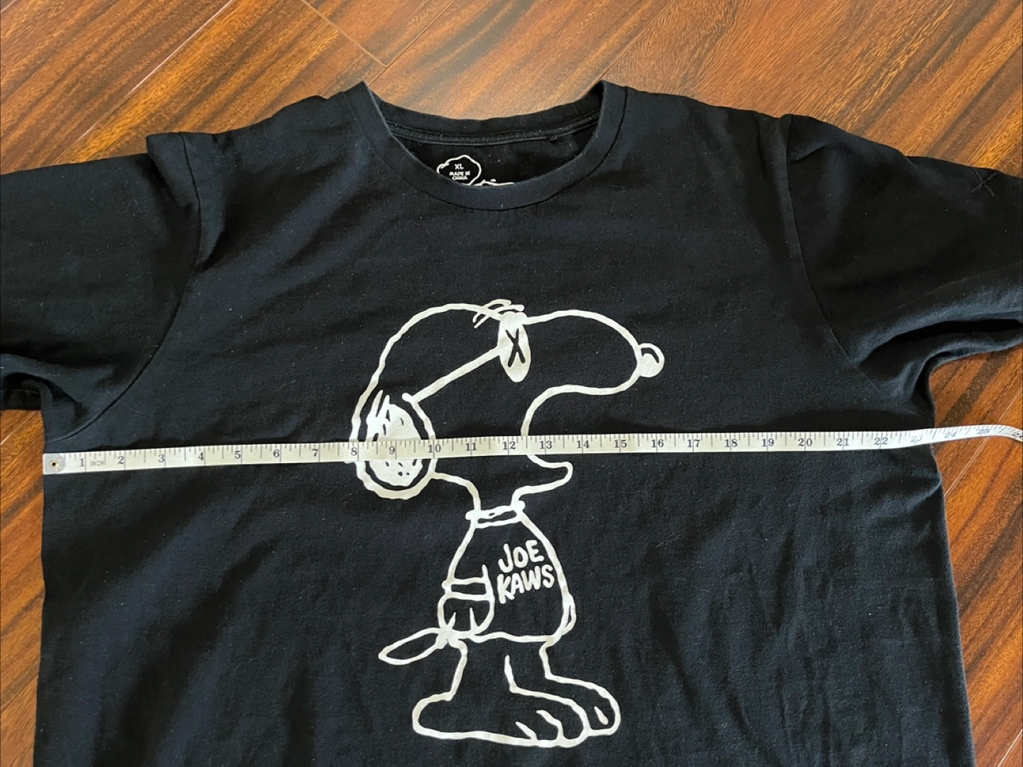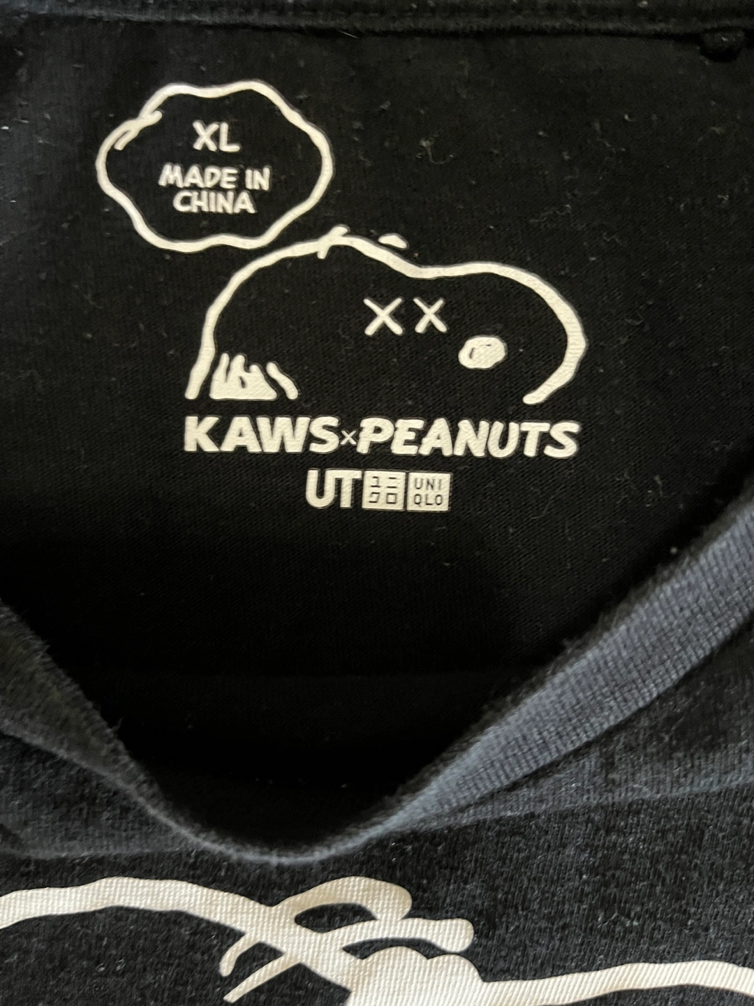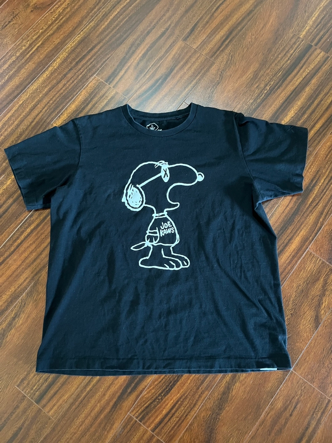 Fun and collectible black T-shirt from Uniqlo featuring Snoopy with a KAWS twist (“Joe KAWS” design). Size XL, 100% cotton. In great condition! Perfect for any fan of Peanuts or KAWS. Smoke free home.