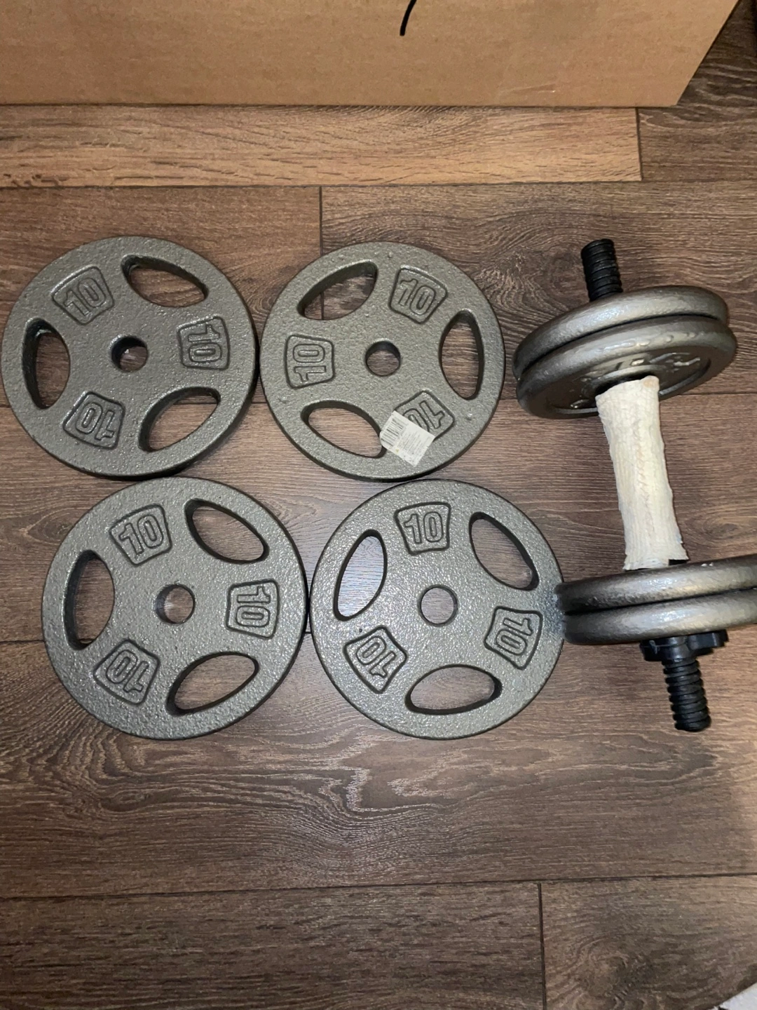 Buy & SellDumbbell Weight SetDumbbell Weight Set$20Four 10lb weight plates and one dumbbell set with adjustable weight (currently has four 5lb weight on it). Great for home workouts.WHERE TO MEETCheck LocationView MapSELLERverifiedChiChurch and Wellesley1247 reviews3 chats·2 favorites·43 viewsSEND CHAT TO SELLERHi Chi! I’m interested in your listing.Hi Chi! I’m interested in your listing.Get the Karrot app to chatSign In to chat