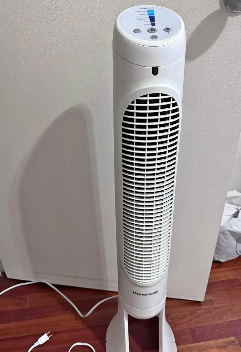 White tower fan. Multiple speed settings. Remote control included.(I don't need anymore, I bought a new one) (The fan it's a little noisy)