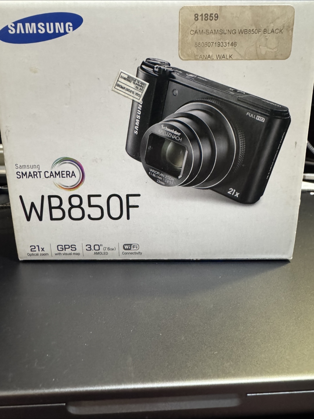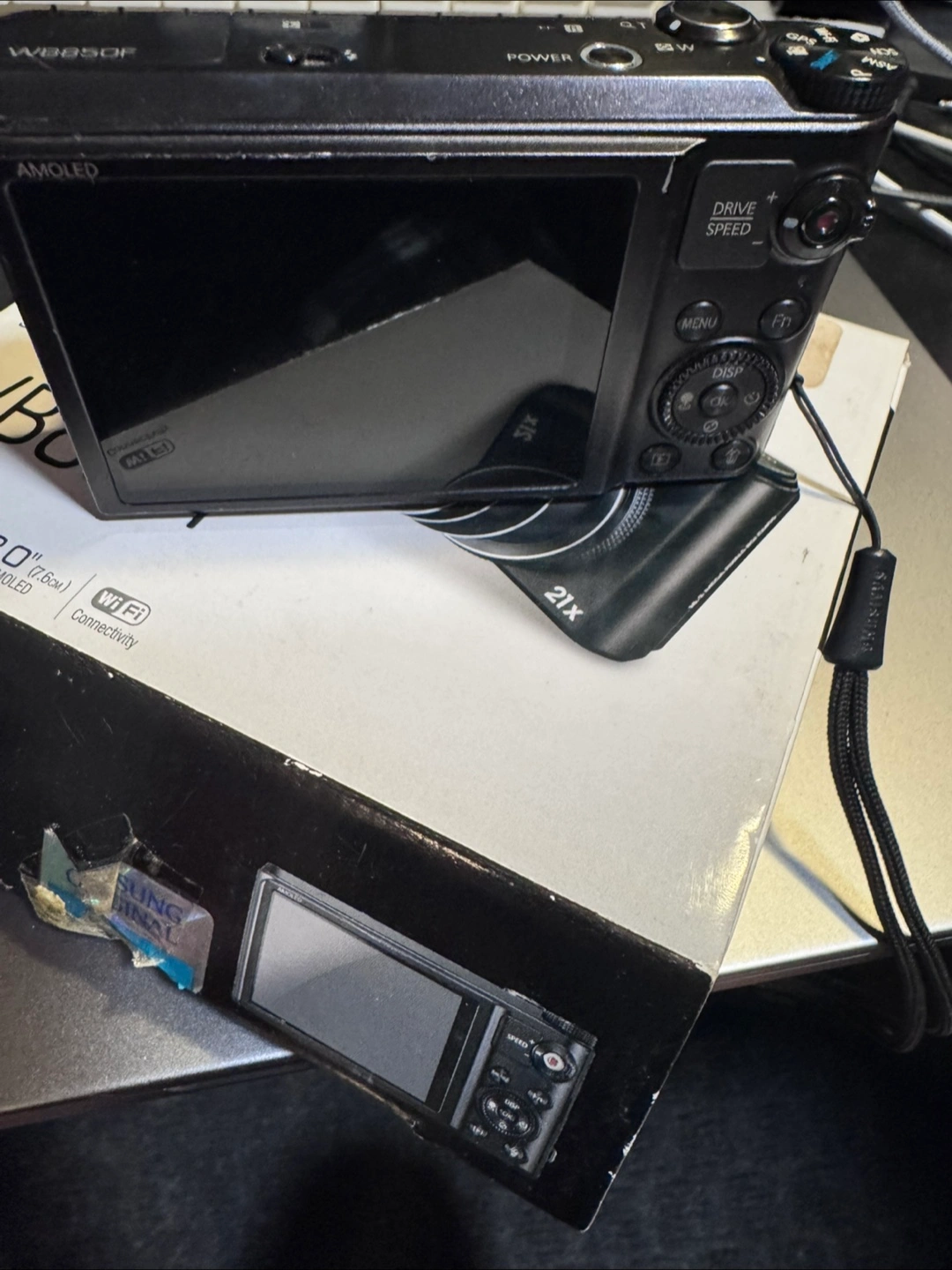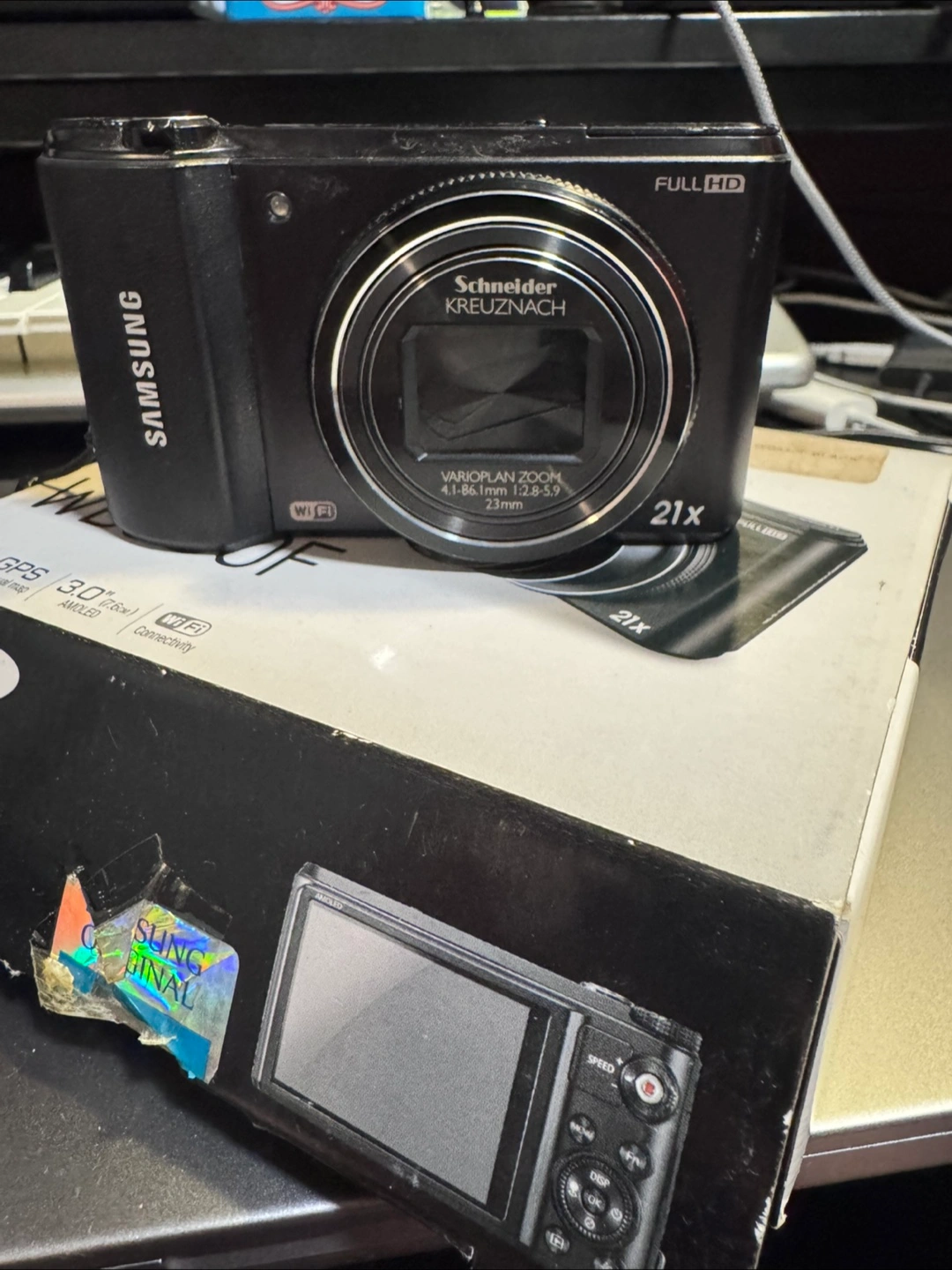 Compact digital camera. Features 21x optical zoom, GPS, and WiFi connectivity. 3.0" AMOLED screen. Includes original box.