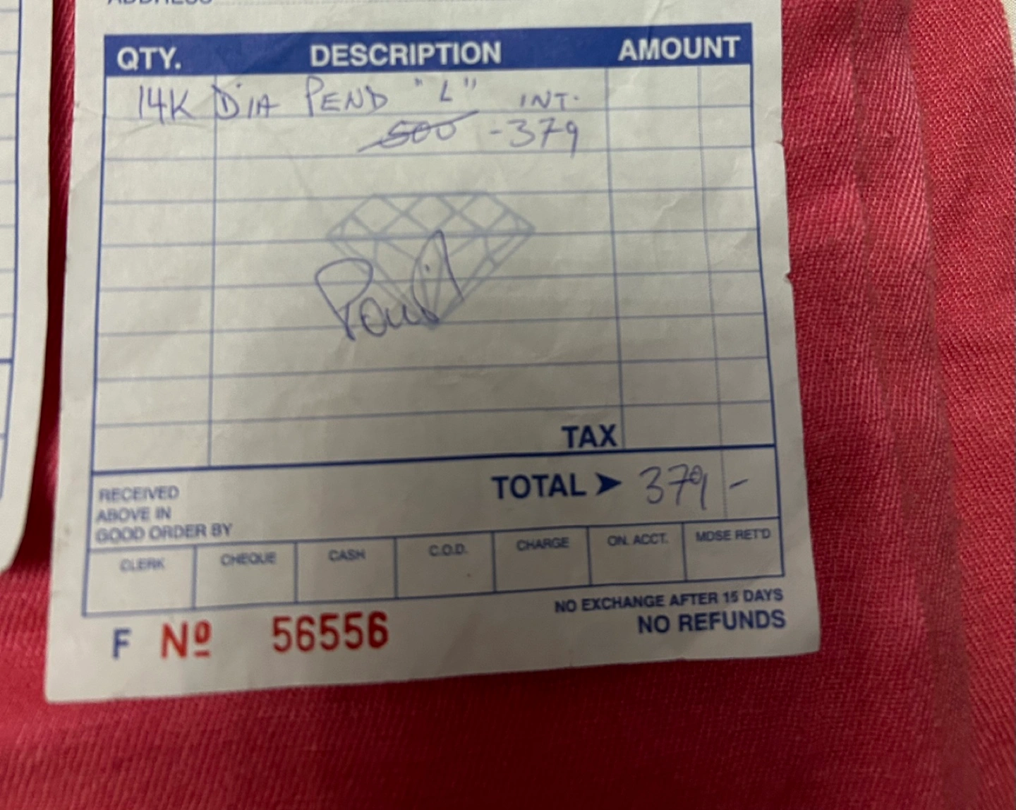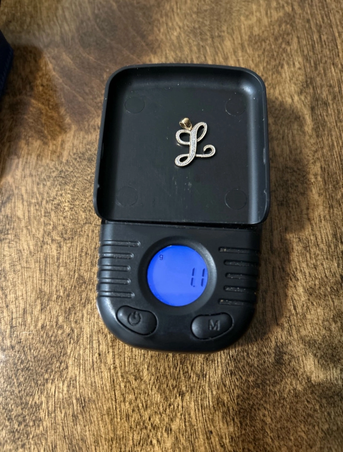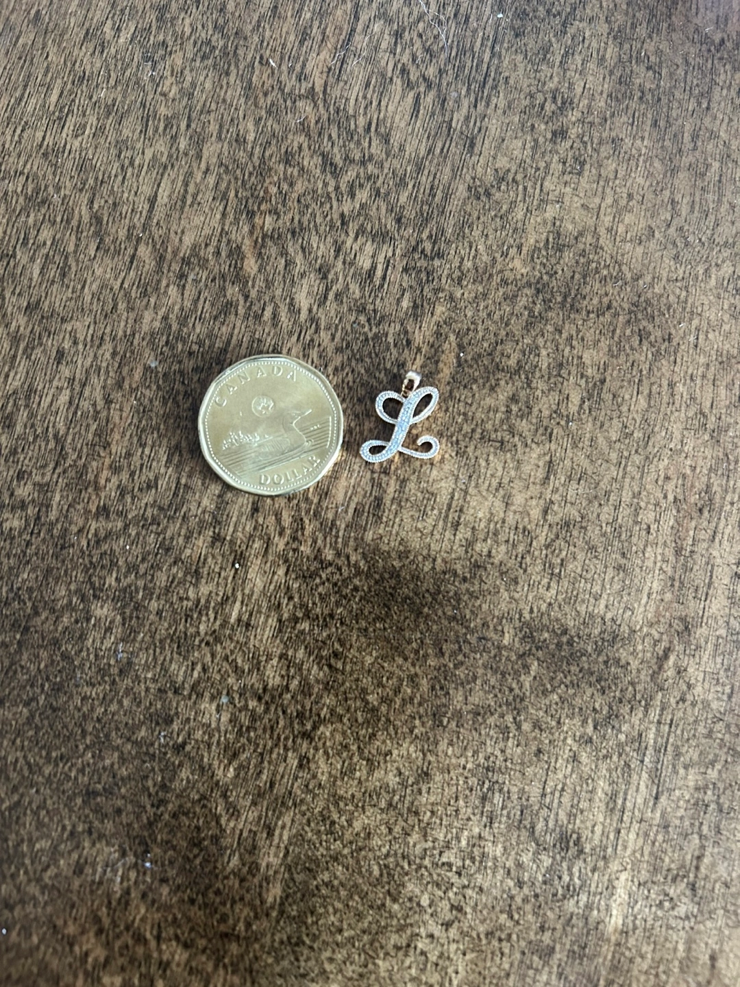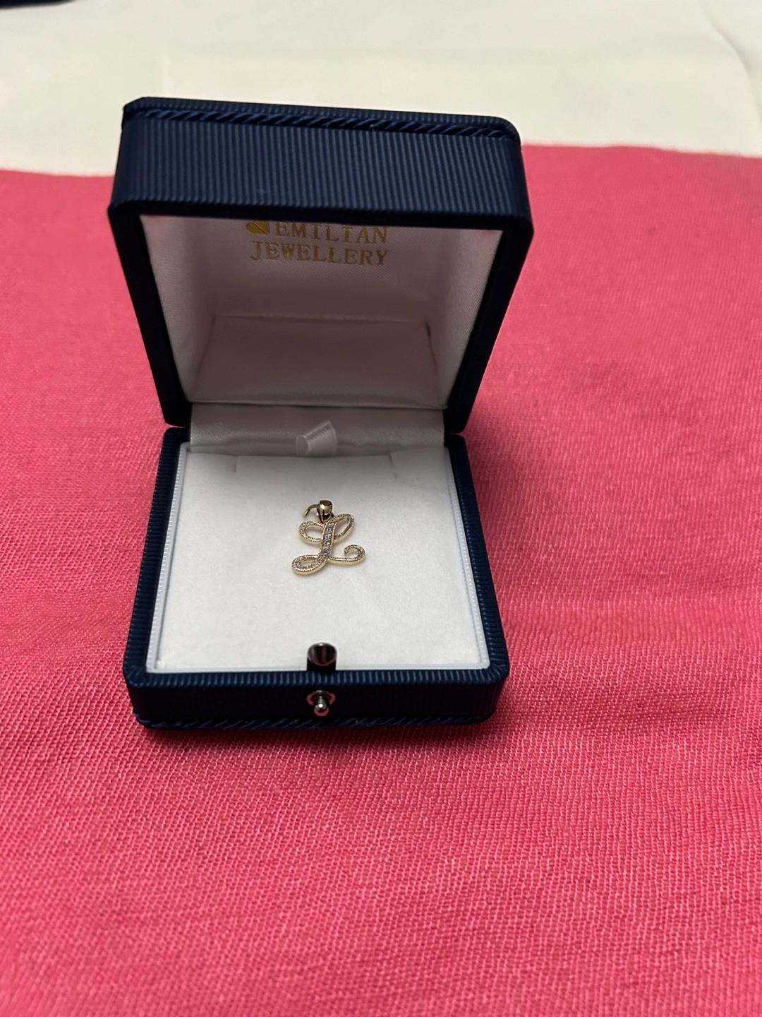 Lovely gold initial L pendant. Features small diamonds. Comes in a nice box. 14k gold.