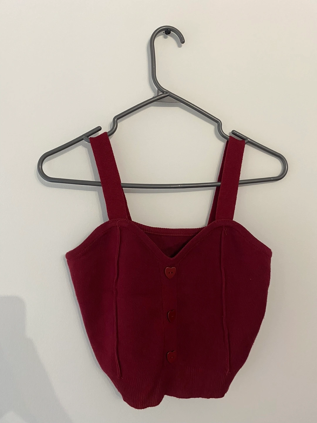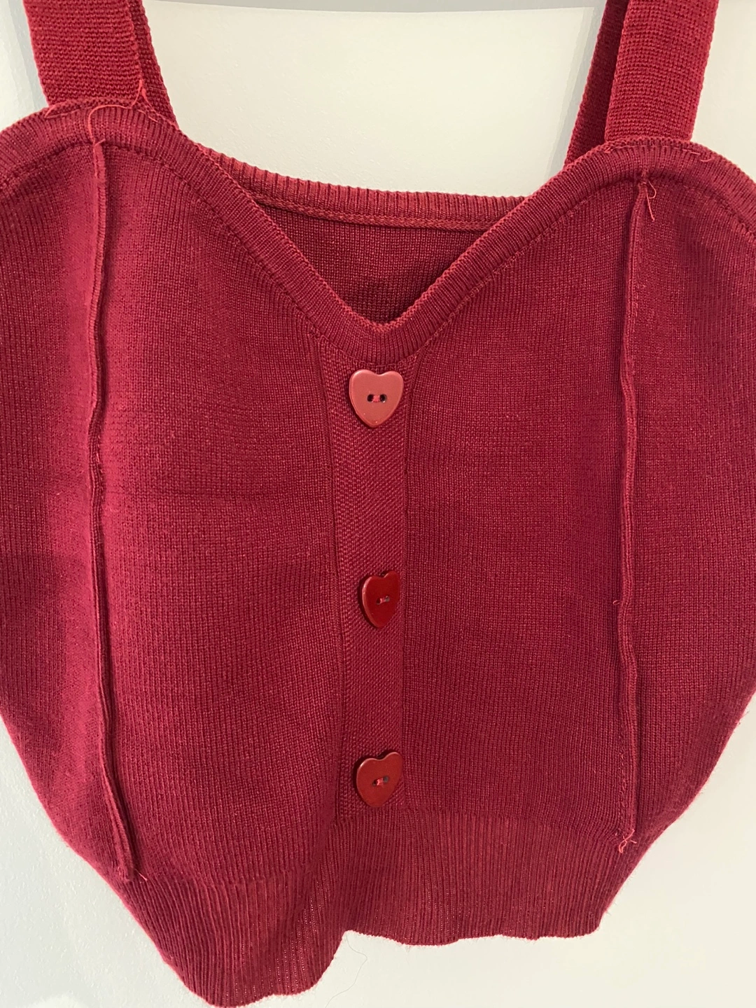 Heart neckline tank top in red Size XS/S Only worn a few times The color is a deep cool toned red Heart buttons and heart neckline Perfect when layered with a shirt or blouse underneath, by itself, or under a cardigan