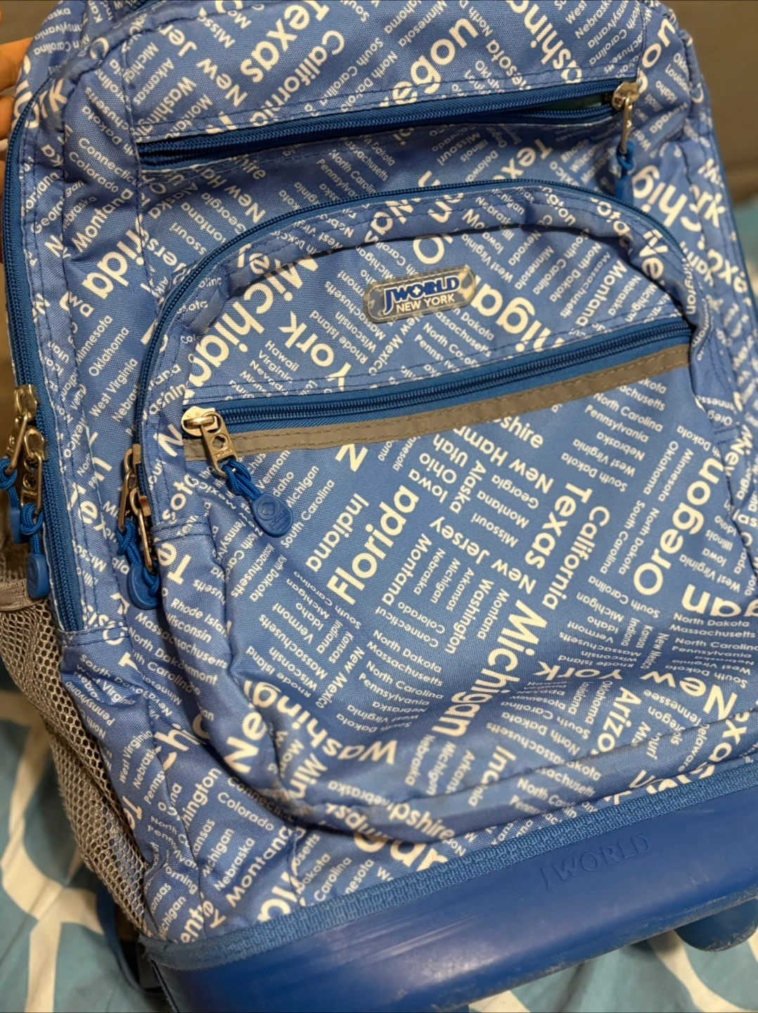 J World New York Rolling Backpack - Blue