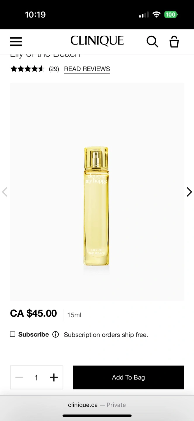 15ml bottle of Clinique My Happy perfume. Lily of the Beach scent. $45 for 2