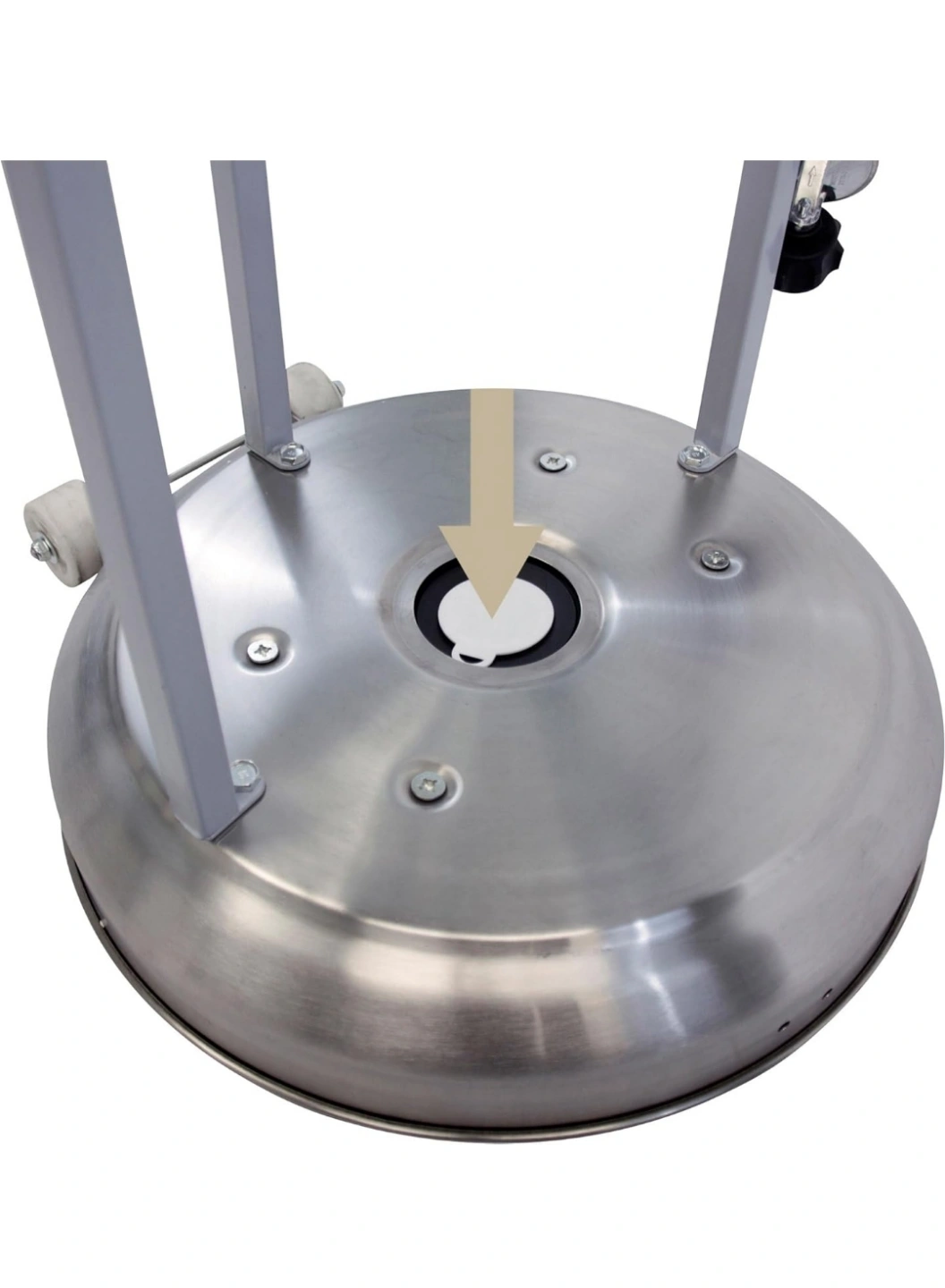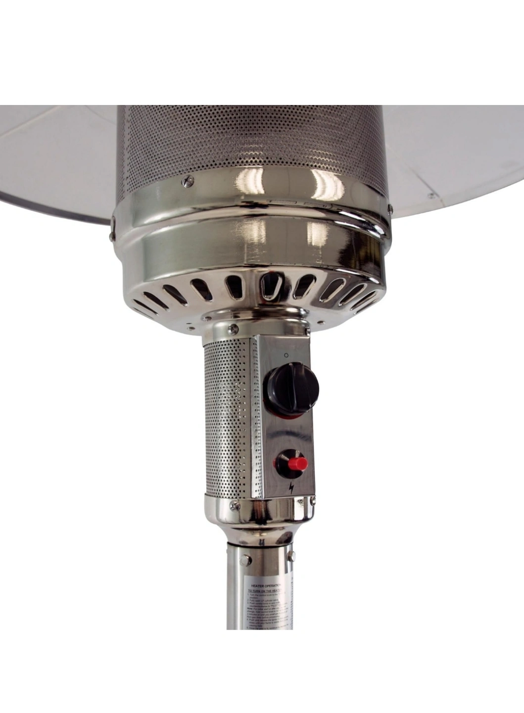 Outdoor propane patio heater. Stainless steel construction. Features wheels for easy mobility. Includes a large reflector for maximum heat distribution. Easy to assemble and use.