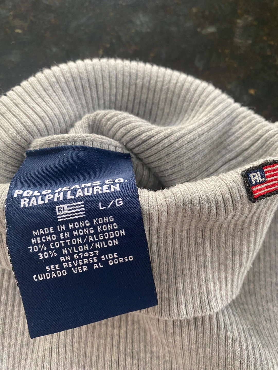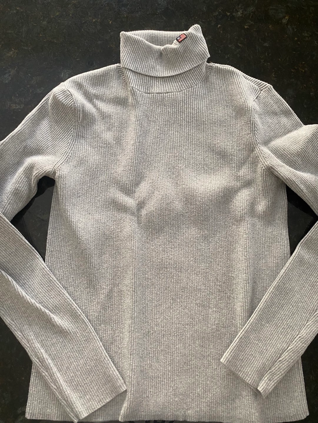Gently used, warm and stylish grey coloured with minimal logo (US flag) on neck, Polo Jeans turtle neck sweater. Size L, 70%cotton+30%nylon.