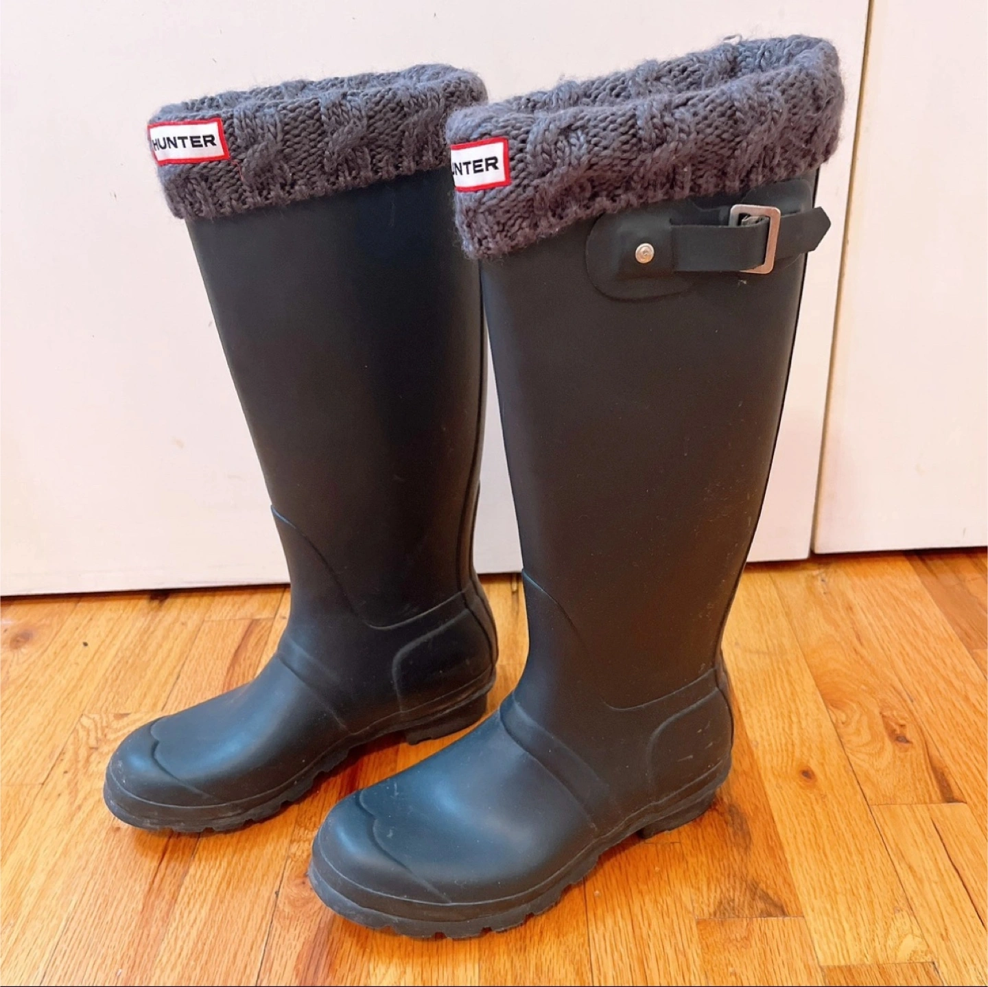 Hunter Navy Rainboot Women 7 + Free Socks Inserts