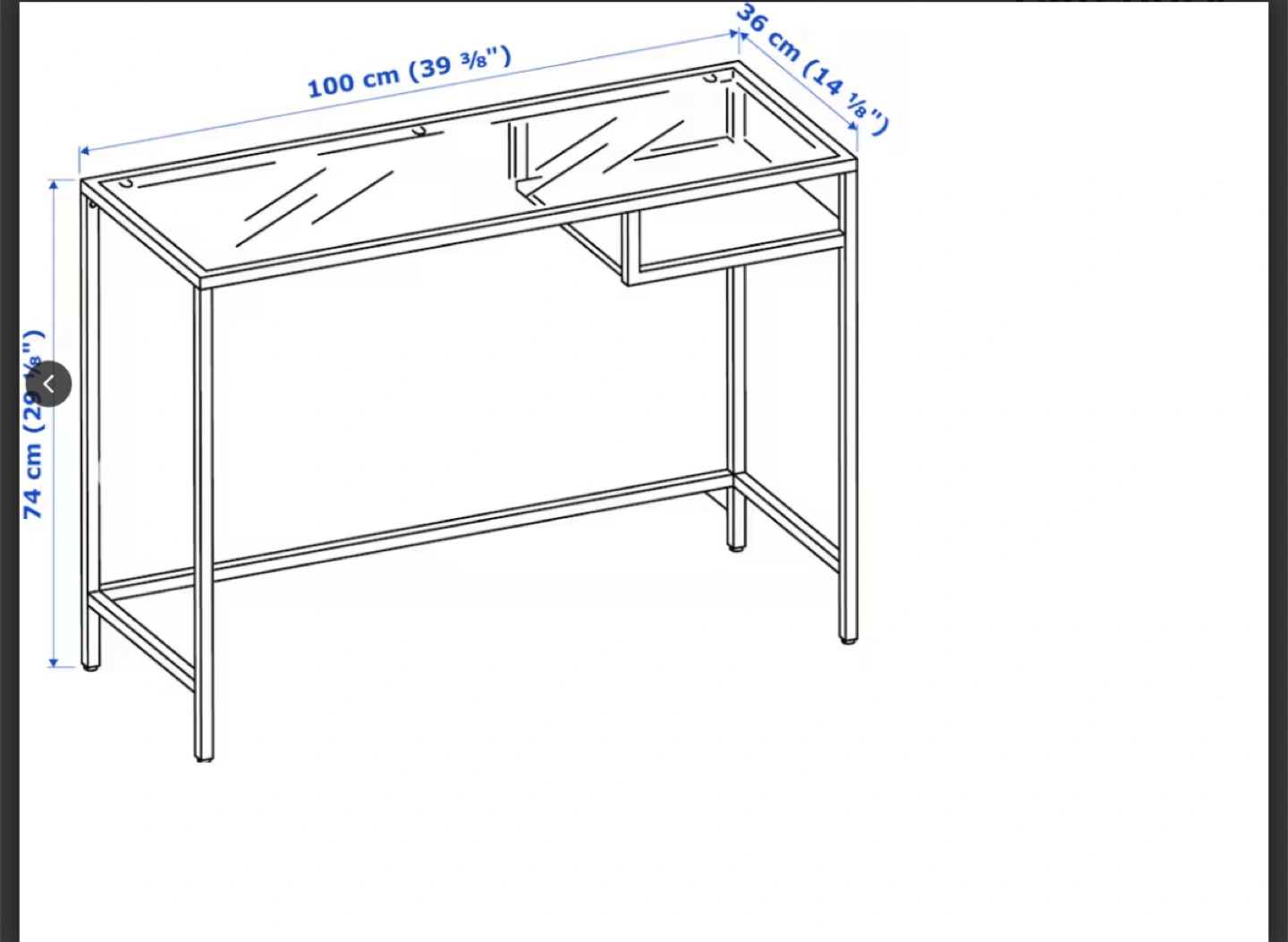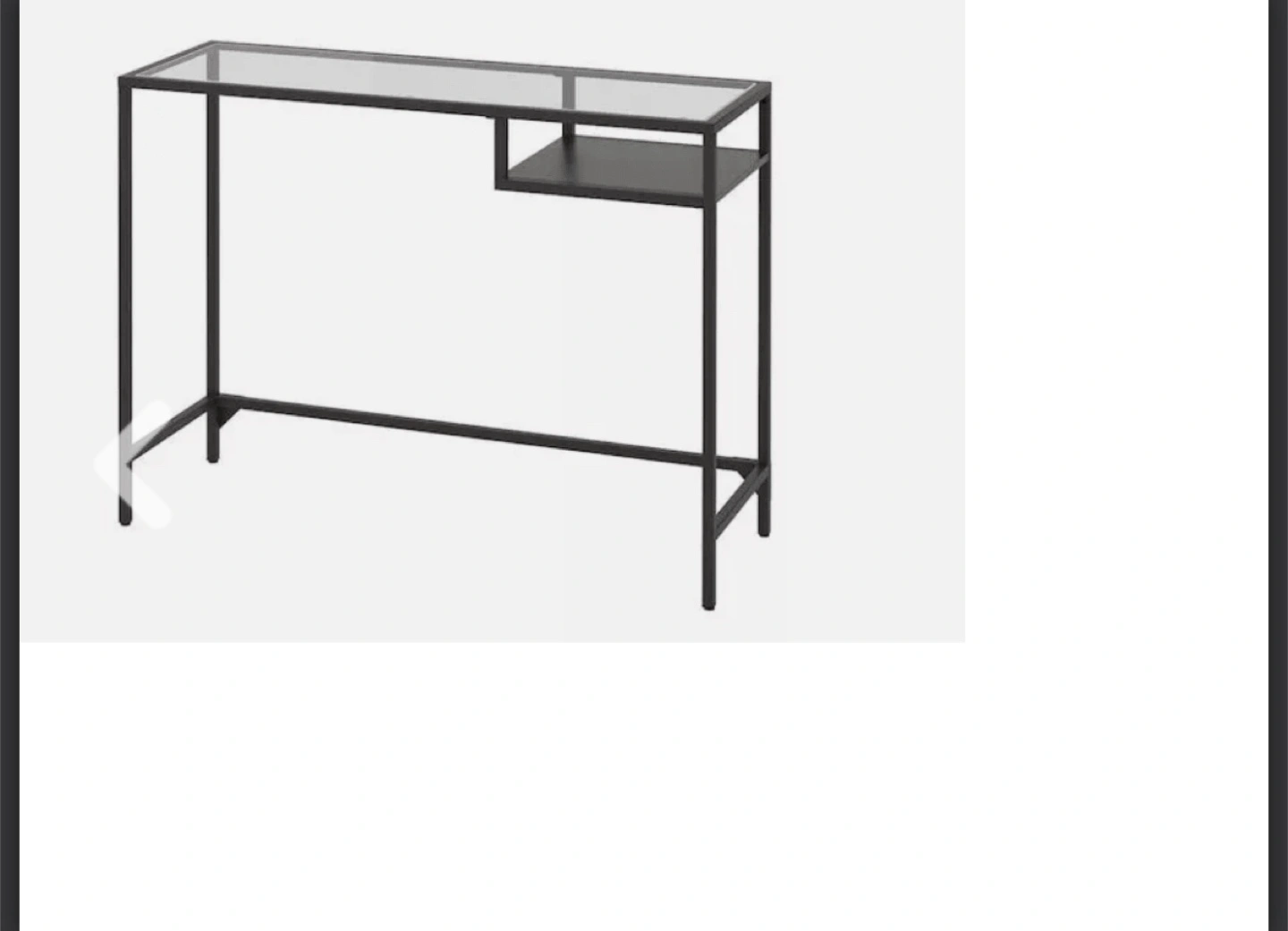 15Modern console table. Features a glass top and a metal frame. Small shelf included. Minimalist design, perfect for an entryway or living room. IKEA Desk >> link to the product :: https://www.ikea.com/ca/en/p/vittsjoe-laptop-table-white-glass-40303444/ (the link says while , i have the black one which they have discontinued right now) Condition :: Almost new , no scratch , glass is intact no cracks Selling it for 65 CAD (Cash only) Pick Up Only