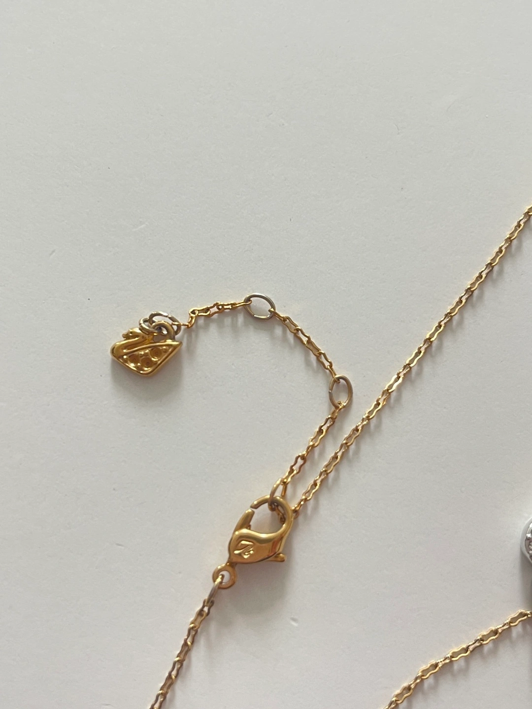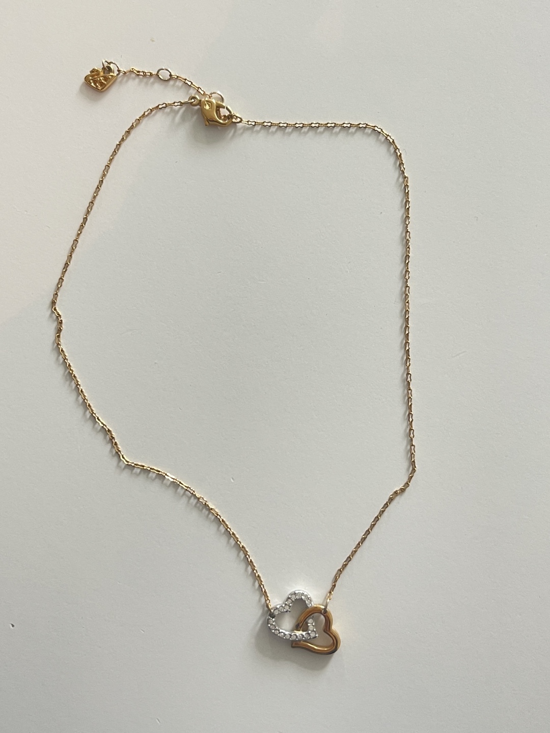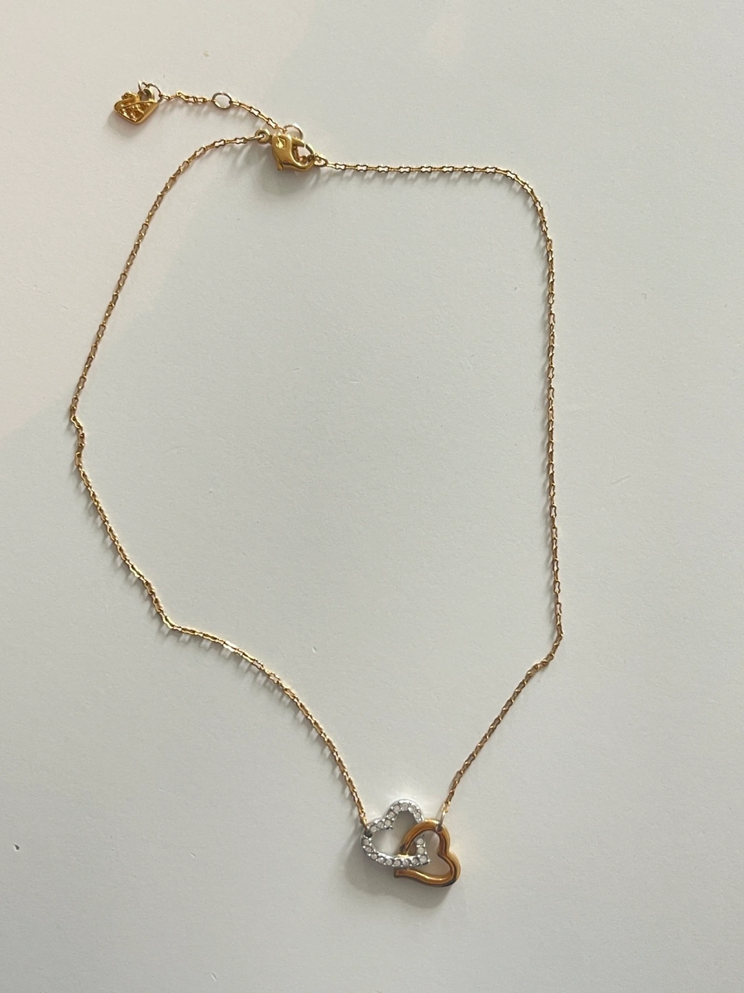 Gold-tone chain and pendant. Features two interlocking hearts, one embellished with clear crystals. Comes with original Swarovski box.