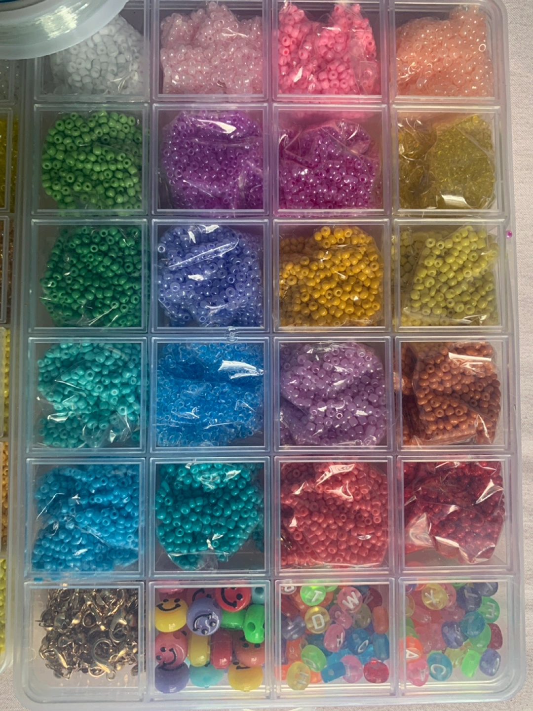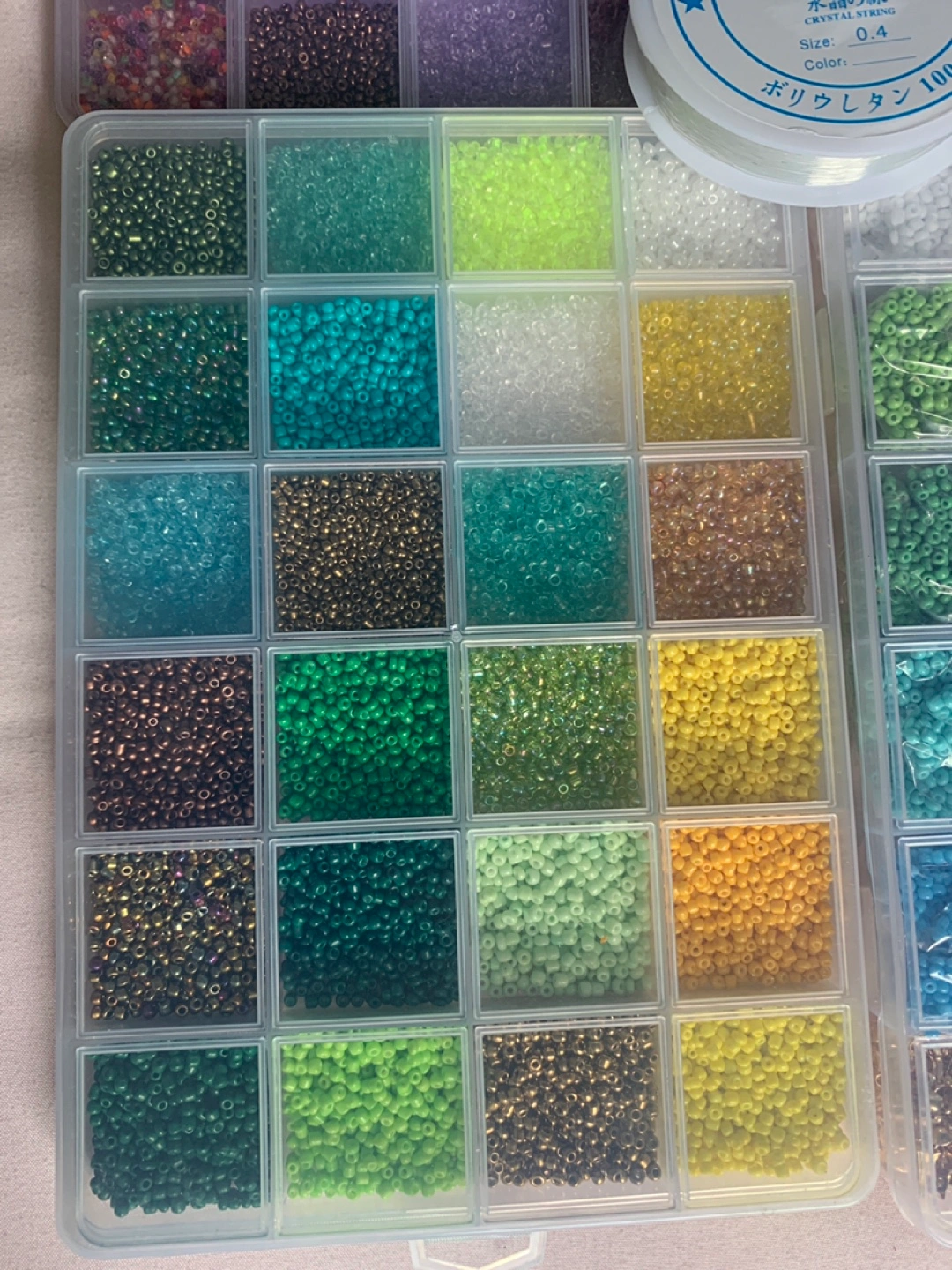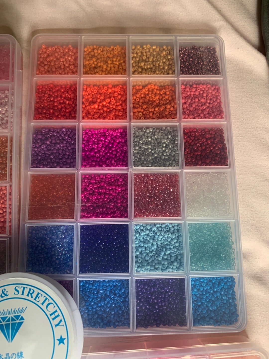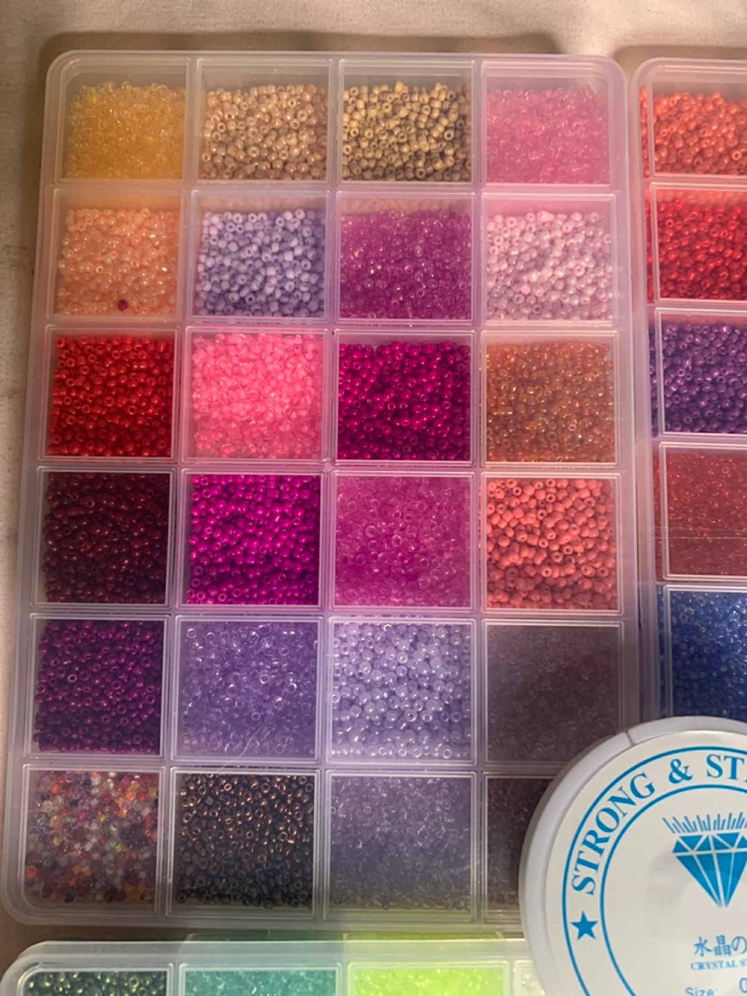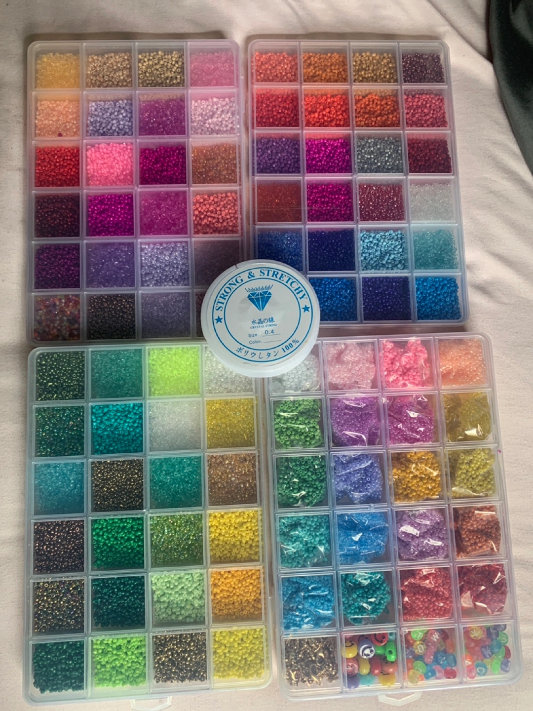 Large variety of colours and sizes. Includes containers and Strong & Stretchy beading line. Perfect for jewelry making.