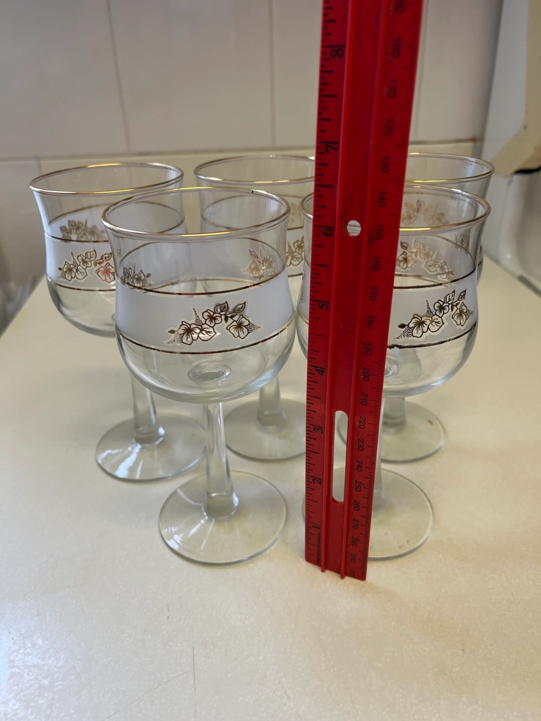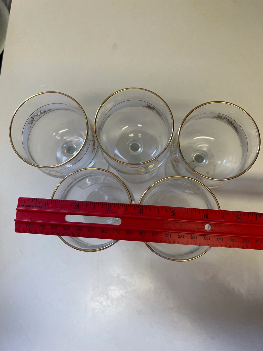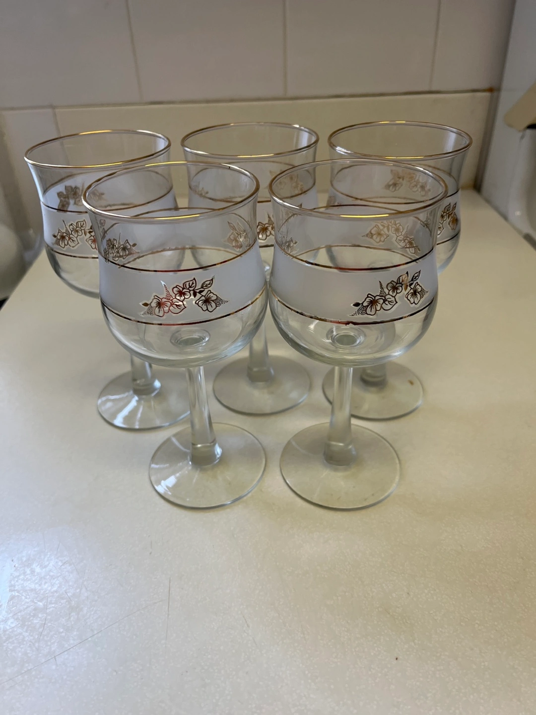 Set of 5 Vintage Gold-rimmed Wine Glasses