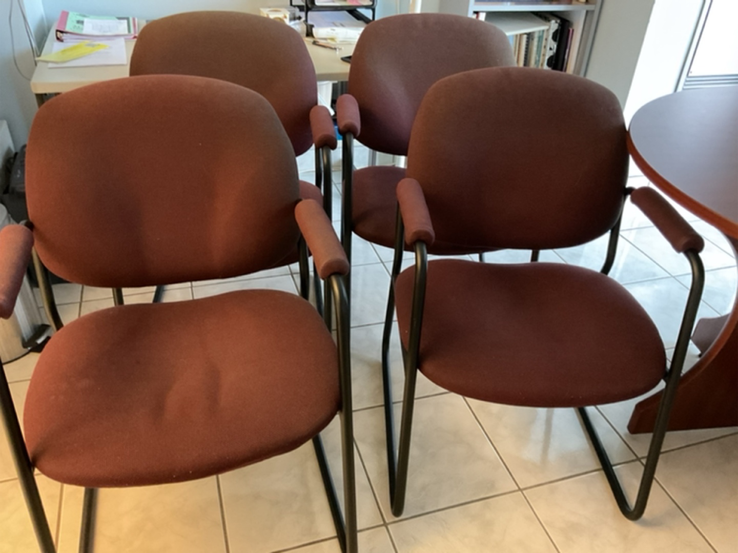 1 / 11 / 1Buy & SellFour burgundy office chairsFour burgundy office chairs$50Set of four burgundy fabric office chairs. Black metal frame. Armrests. Used but good condition.WHERE TO MEETCheck LocationView MapSELLERPennyWillowdale E31833 reviews0 chats·1 favorites·34 viewsSEND CHAT TO SELLERHi Penny! I’m interested in your listing.Hi Penny! I’m interested in your listing.Get the Karrot app to chatSign In to chat