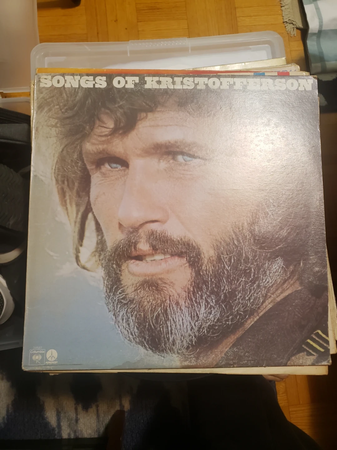 A vinyl record featuring the songs of Kris Kristofferson. Perfect for a relaxing afternoon of listening. Side one and side two feature a list of songs.