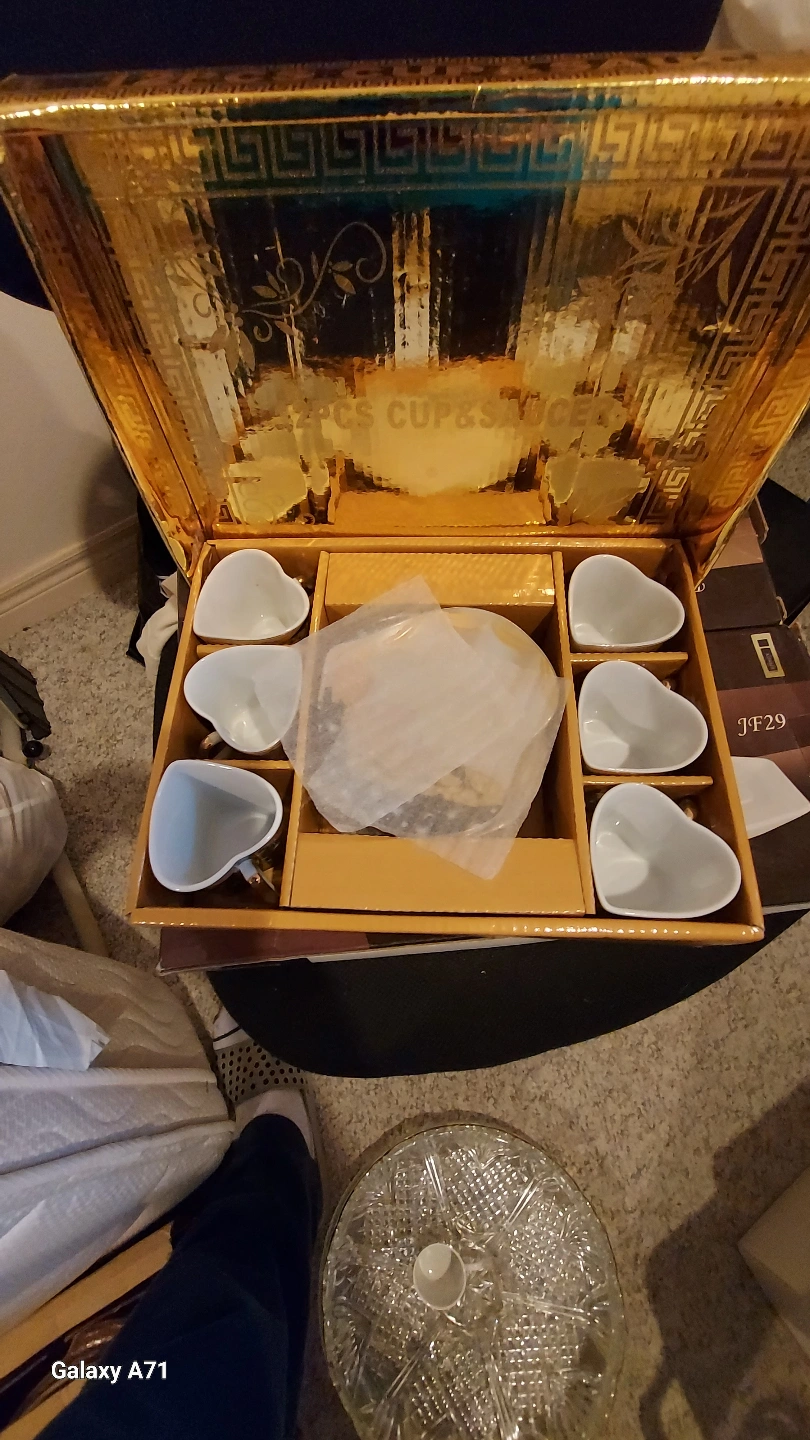 The cups are heart shaped and come in a set of six with matching saucers, all in an ornate box. A perfect way to enjoy your favourite tea.. Turkish Coffee Cups