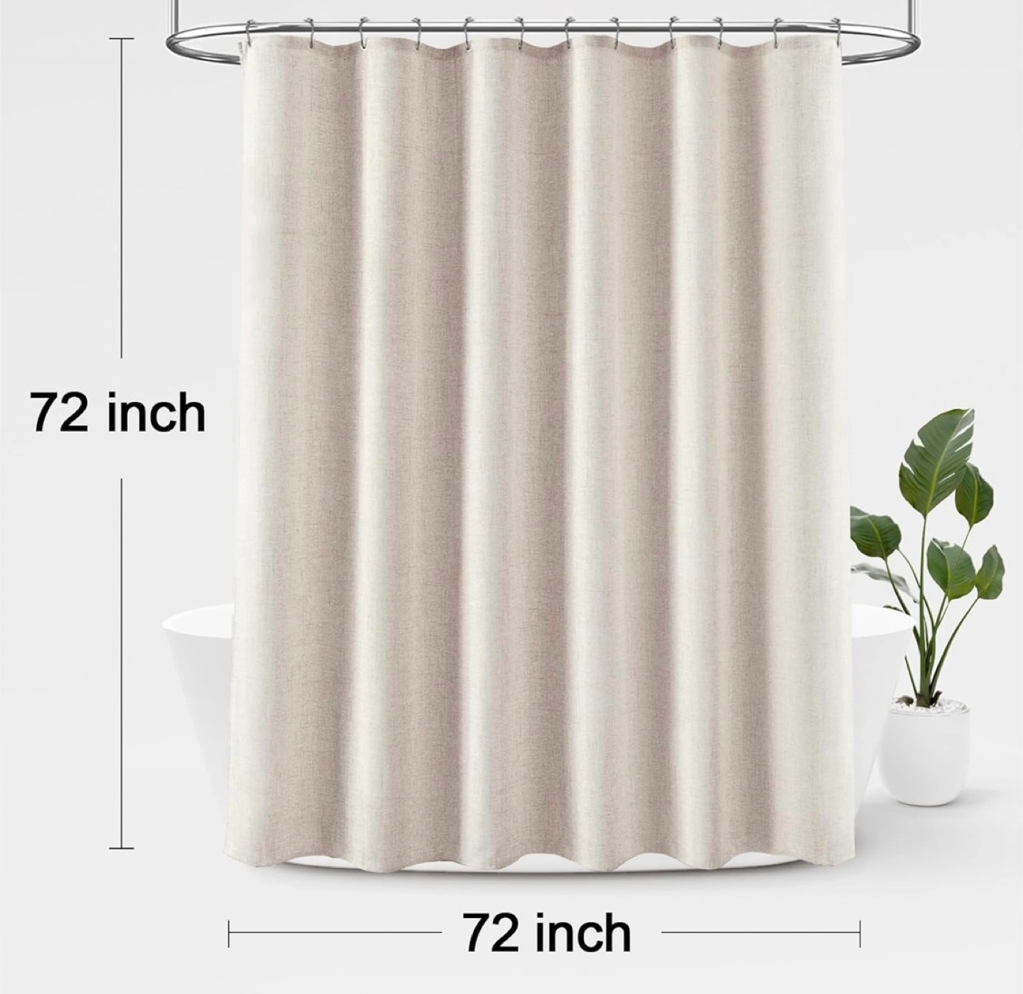 Lovely Linen Textured Shower Curtain with Chrome Silver Hooks