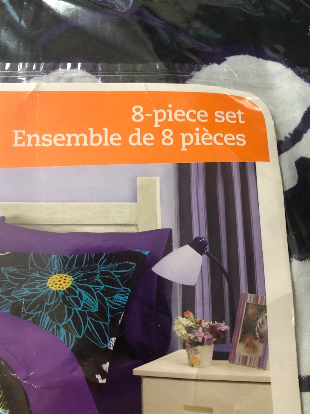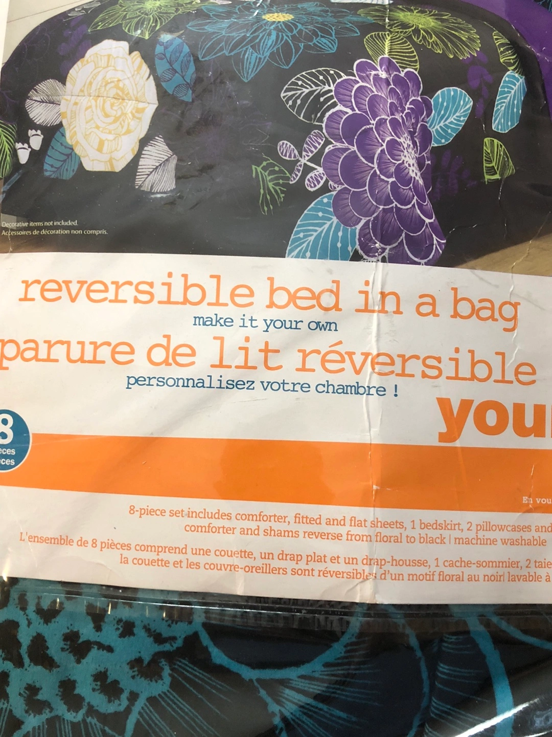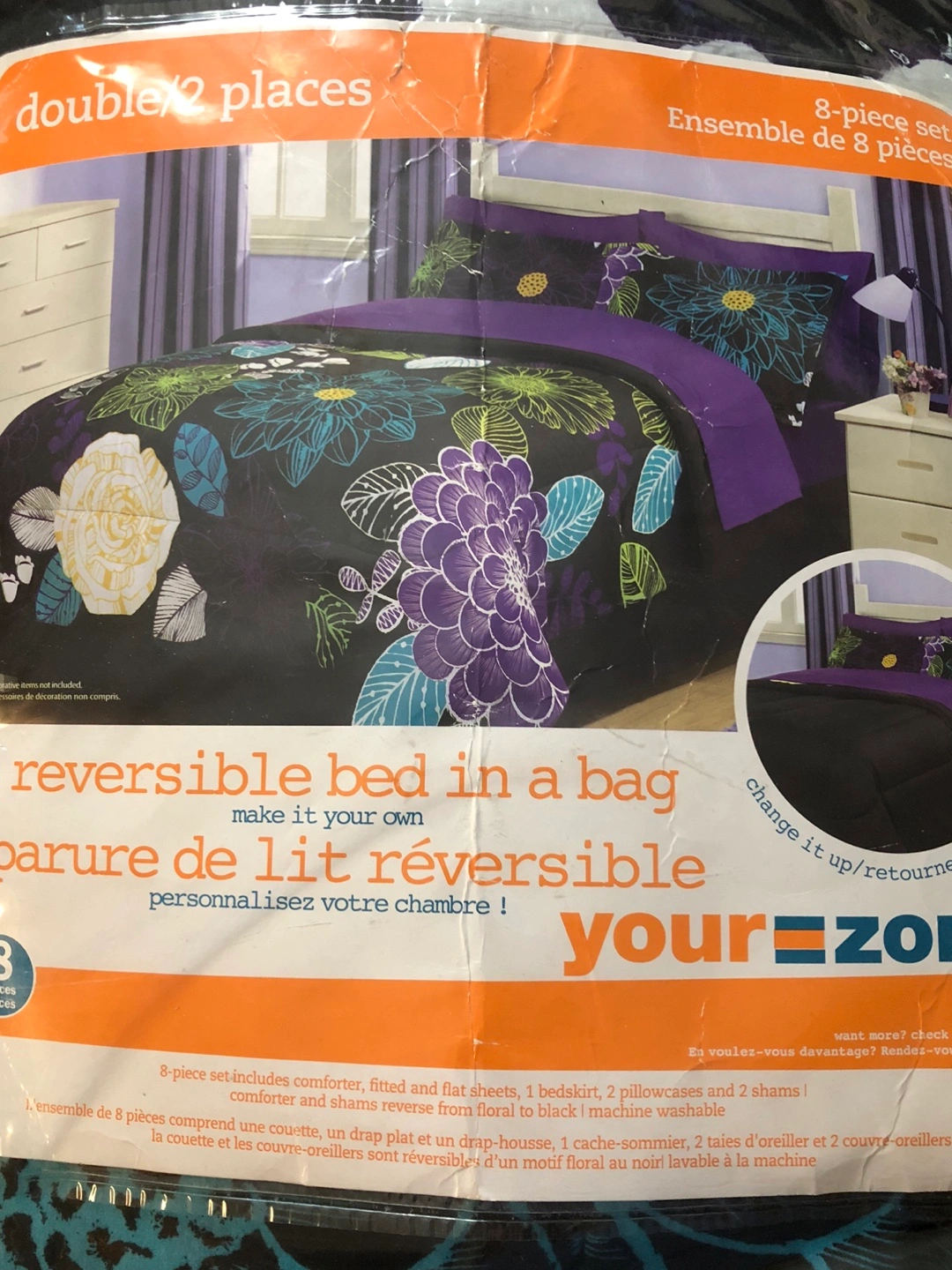 A bed in a bag set featuring a floral design. Includes a comforter, sheets, pillowcases, and more. You can sink into a peaceful sleep surrounded by beautiful flowers. Reversible 8 piece Double size