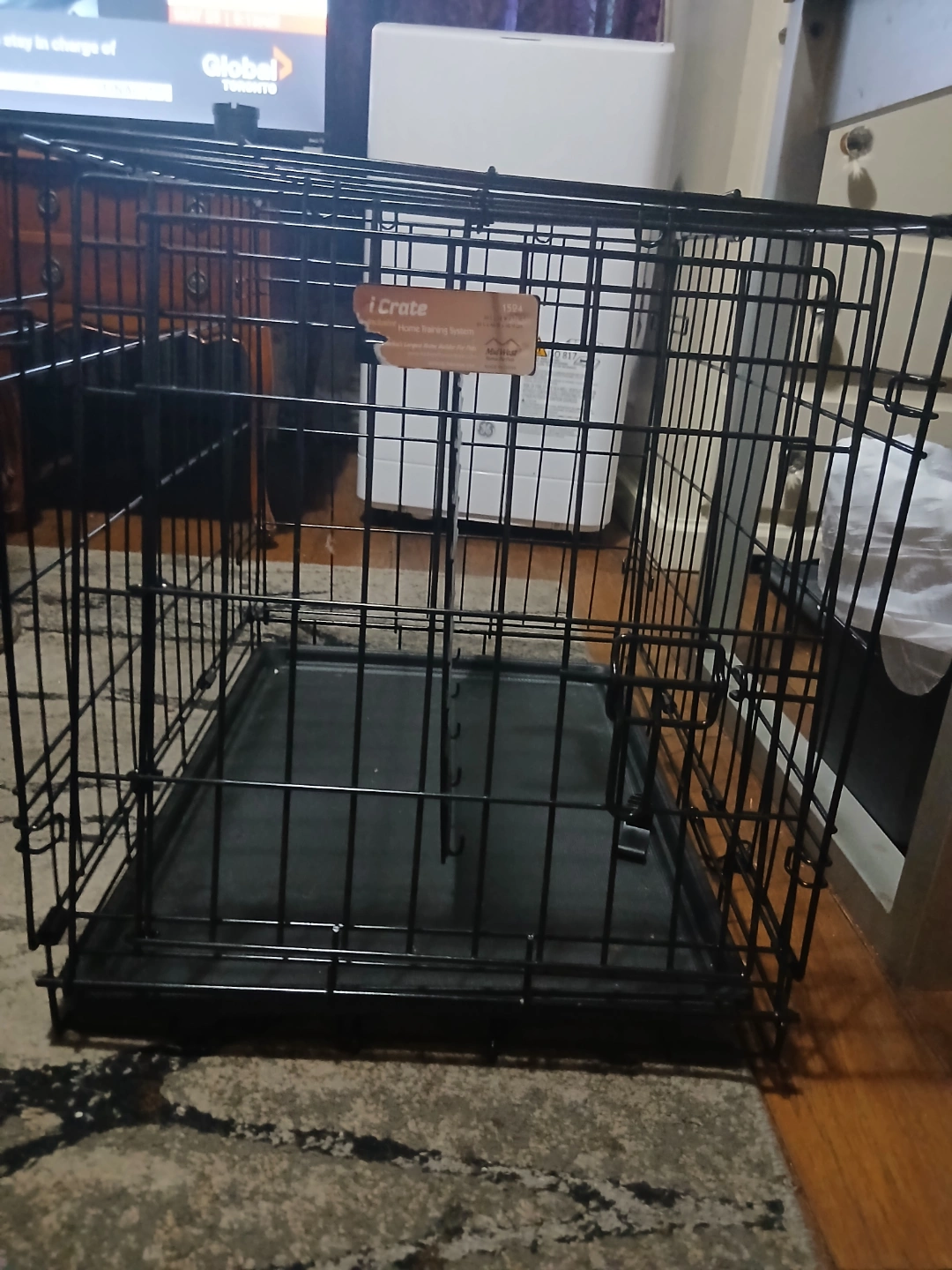 Black metal pet crate. Rectangular shape. Includes a tray. Ideal for providing your furry friend with a safe and comfortable space.