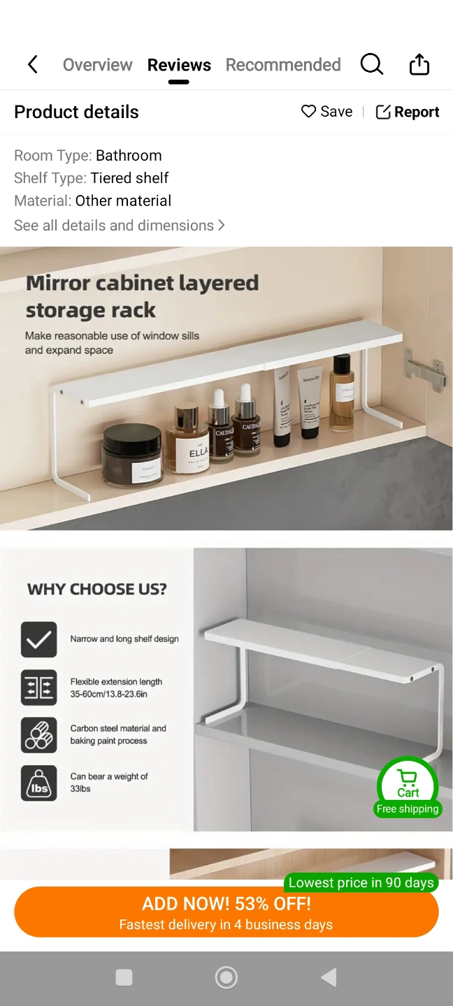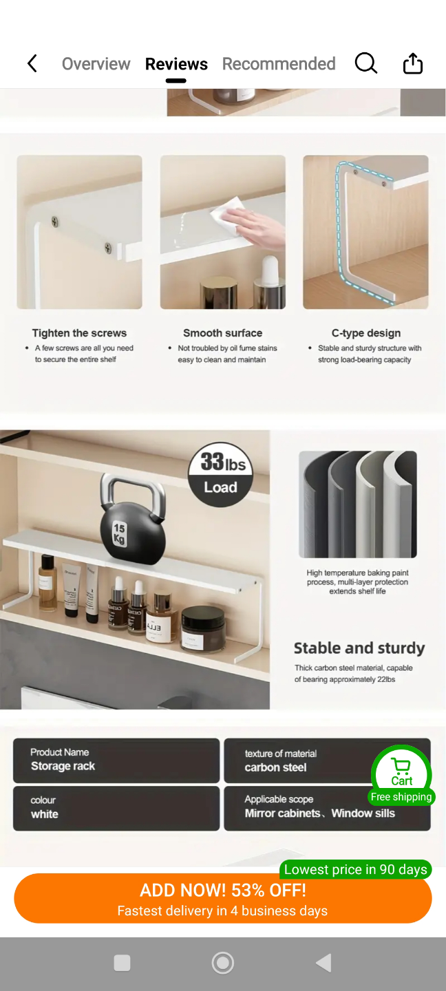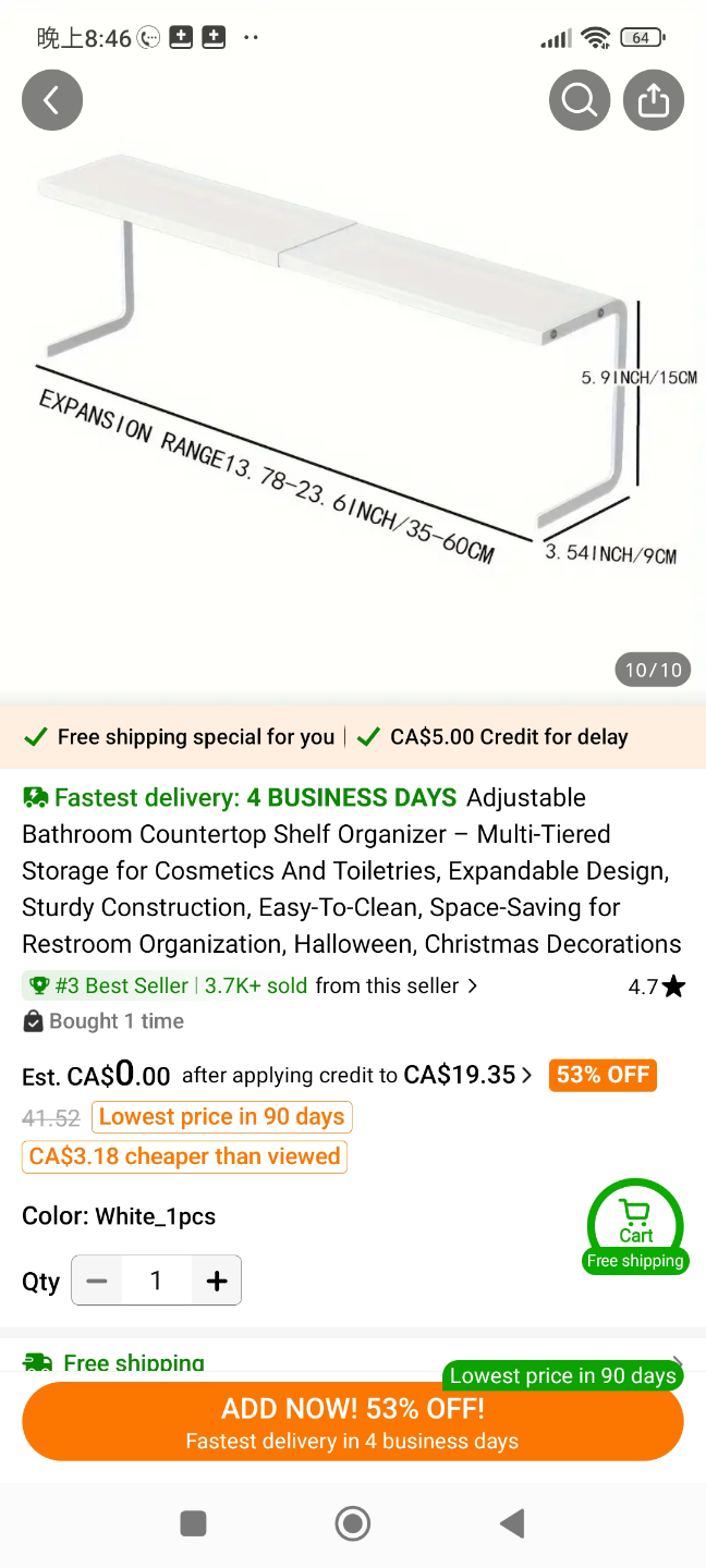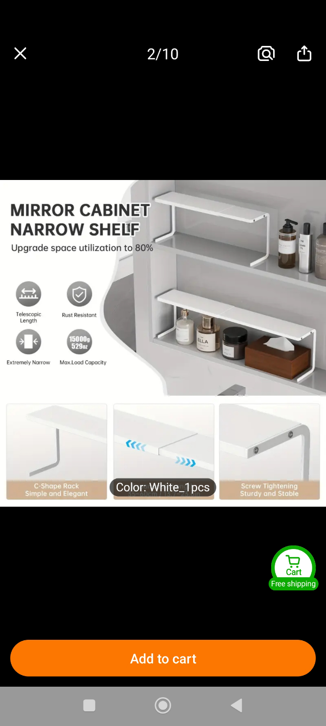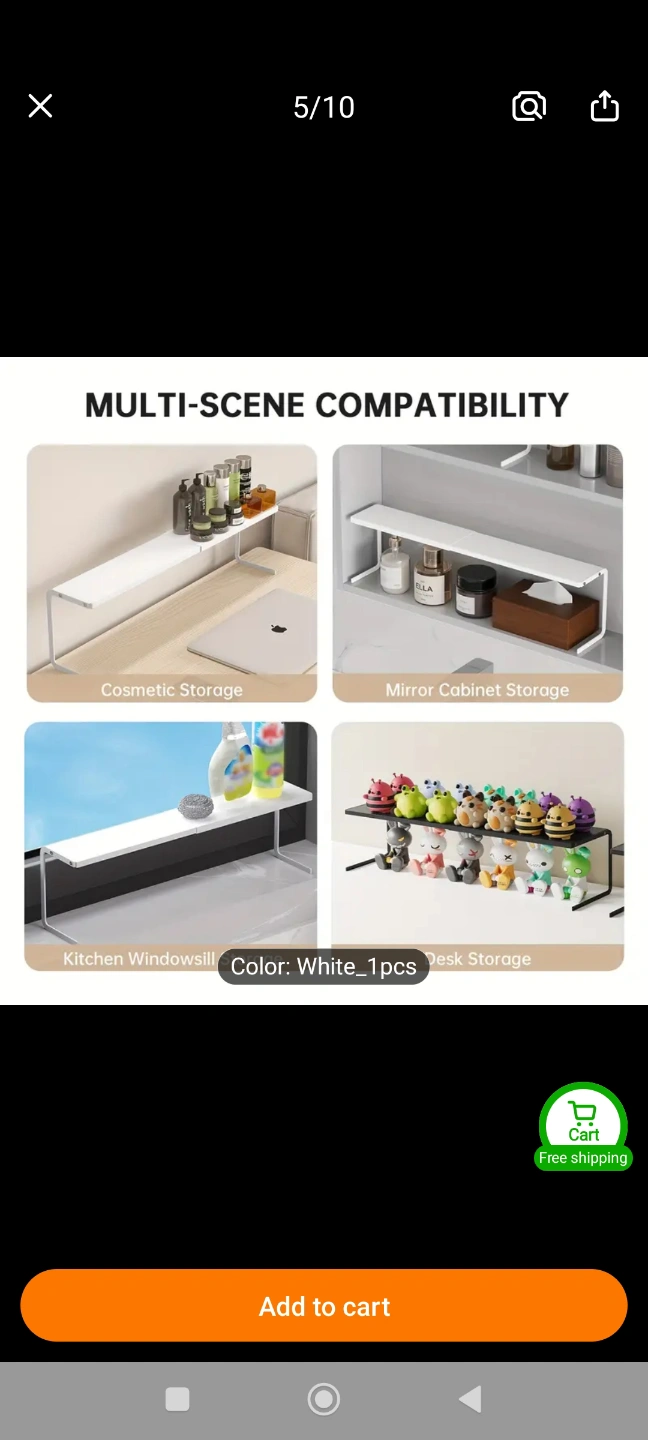 White shelf organizer. Expandable design. Made of carbon steel. You could use it to organize your bathroom products, making it feel neat and serene.