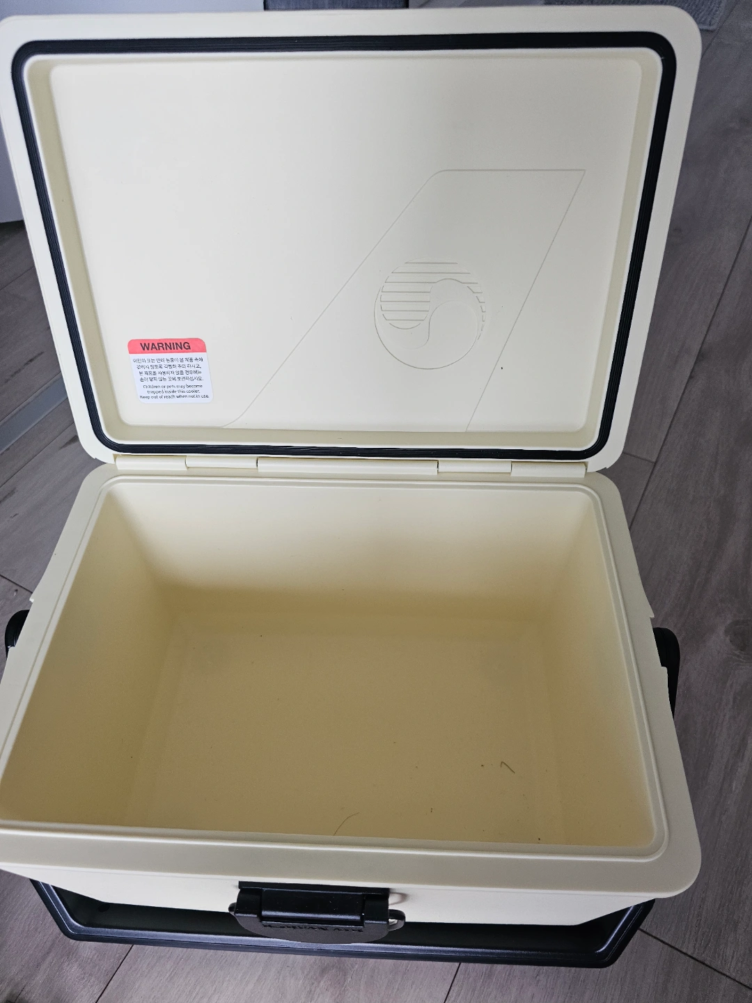 Cream-coloured cooler box.