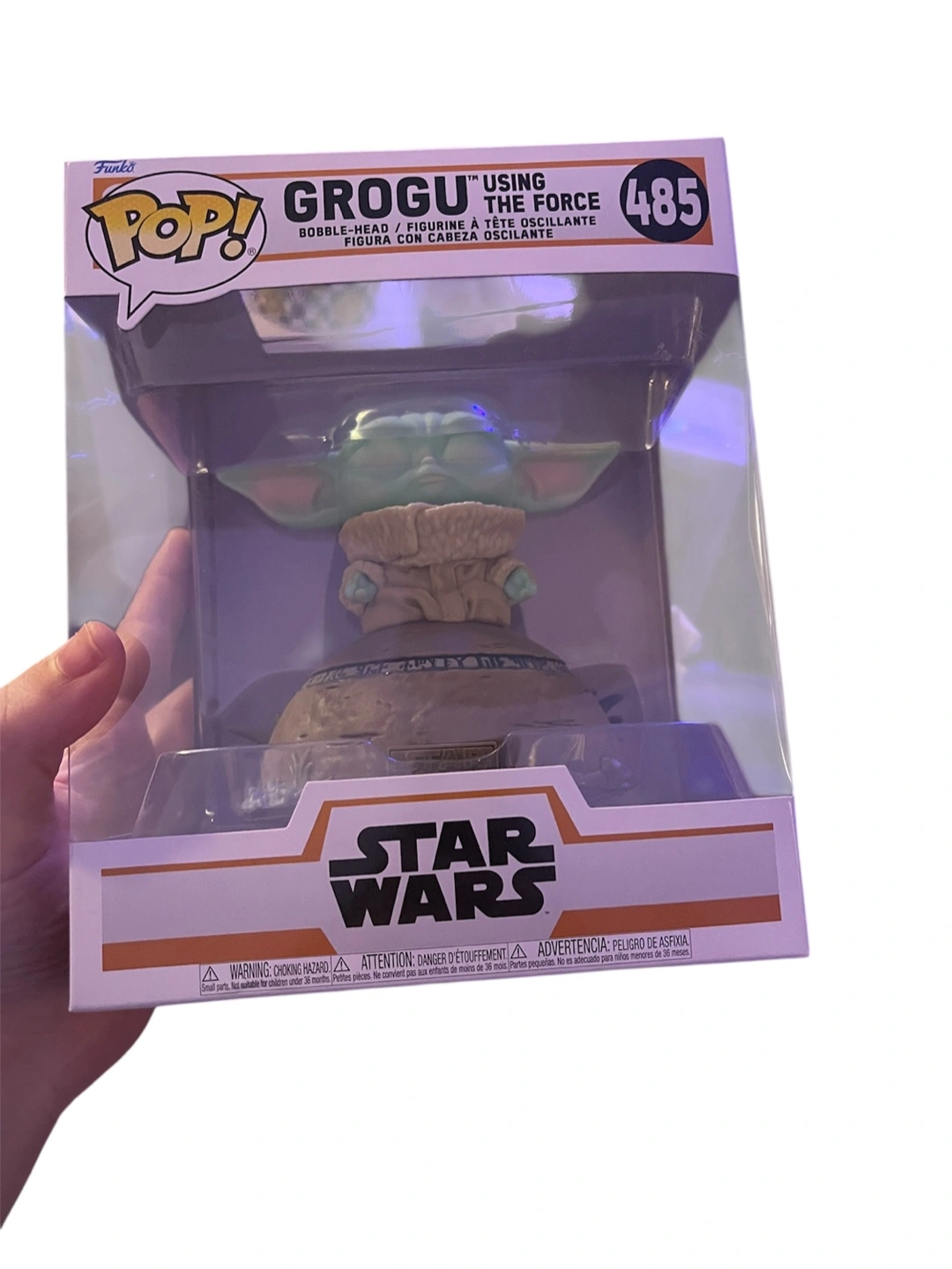 Figure of Grogu, packaged in a box. The figure features a detailed design. It would be a nice addition to any collection, bringing a smile to your face when you see it.