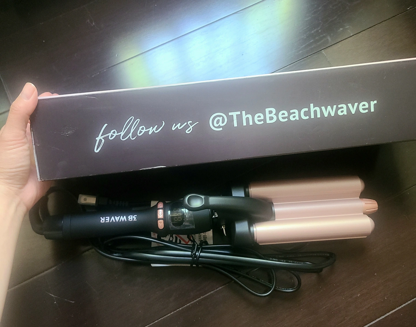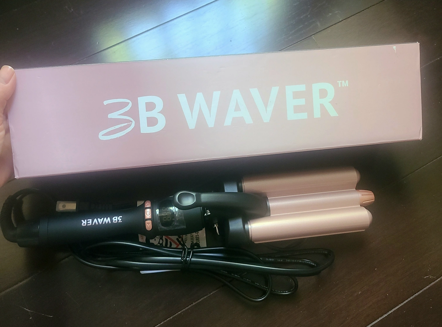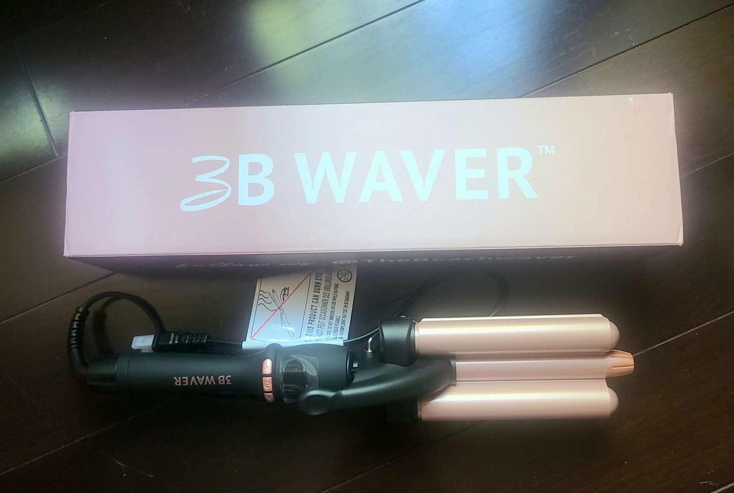NEW Hair waver and it's packaging. The iron has a black handle. The curling rods are a rose gold colour. Create beautiful beach waves with this easy-to-use styling tool.