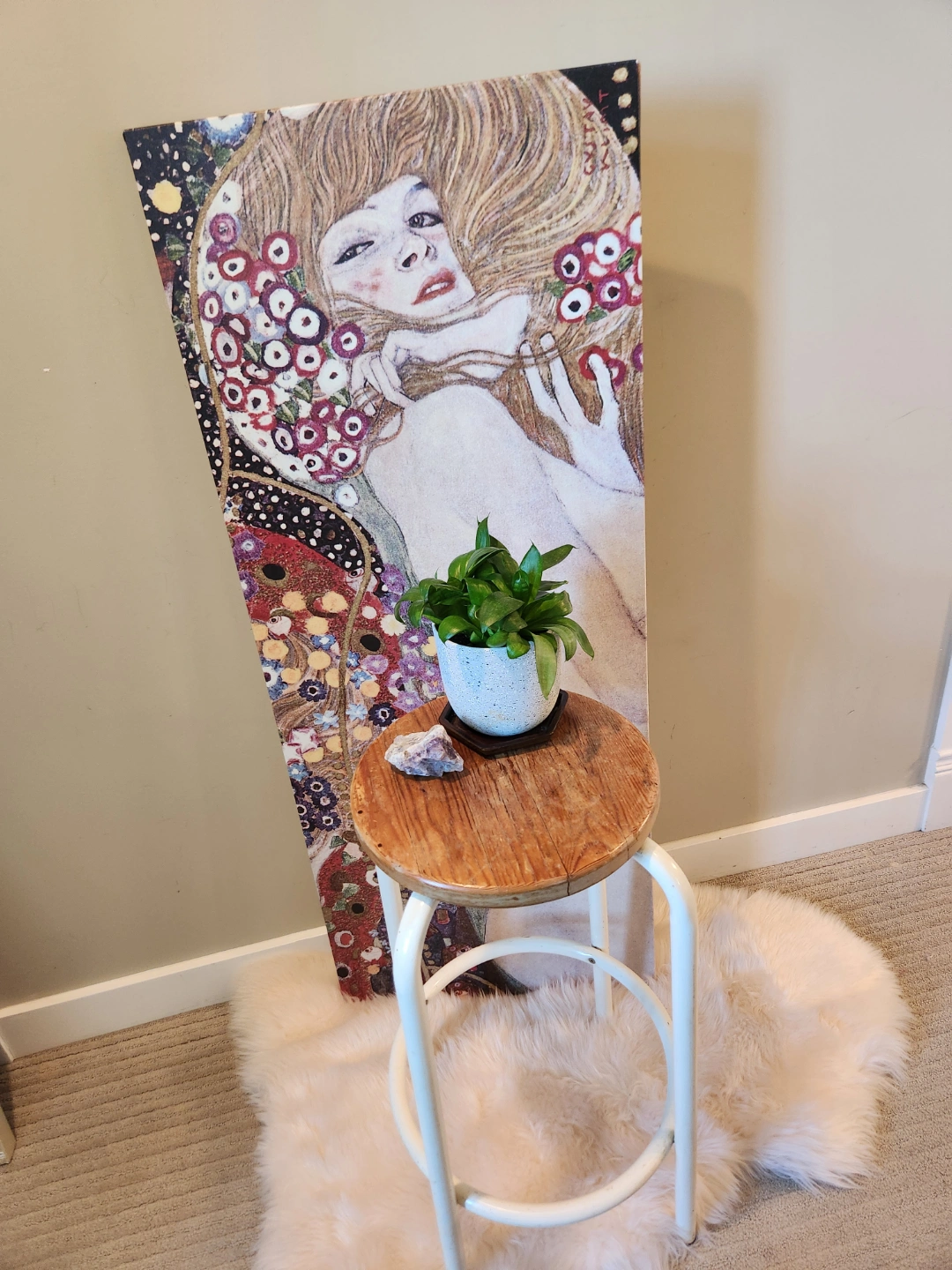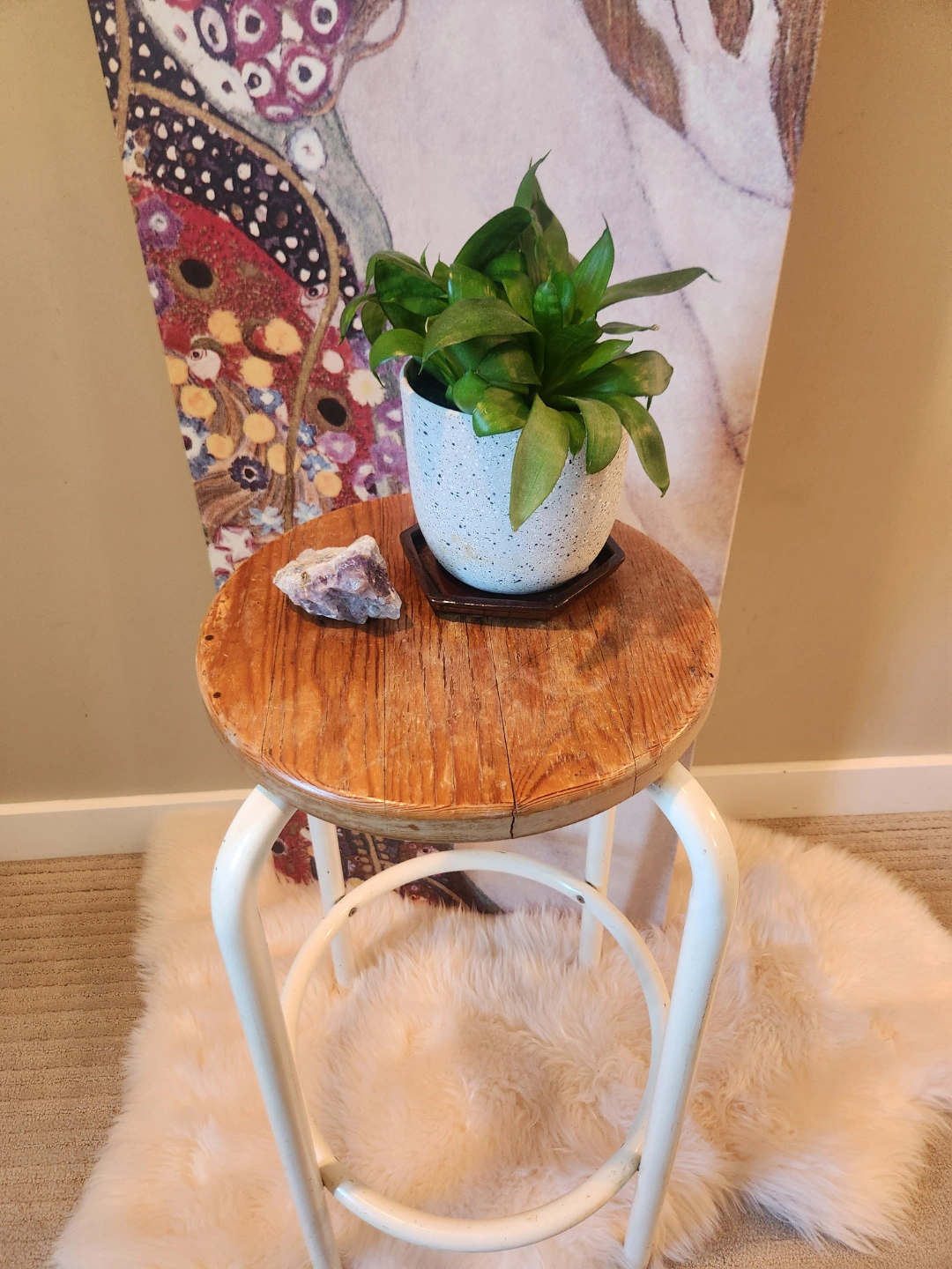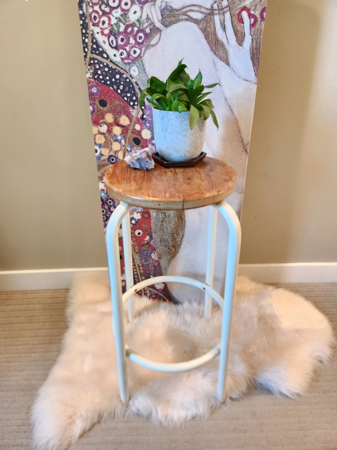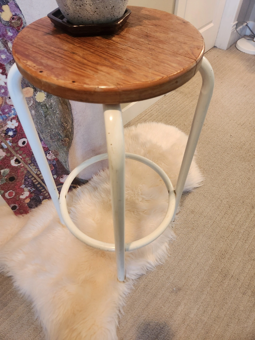 1980's Wooden and Metal Stool OR plant stand