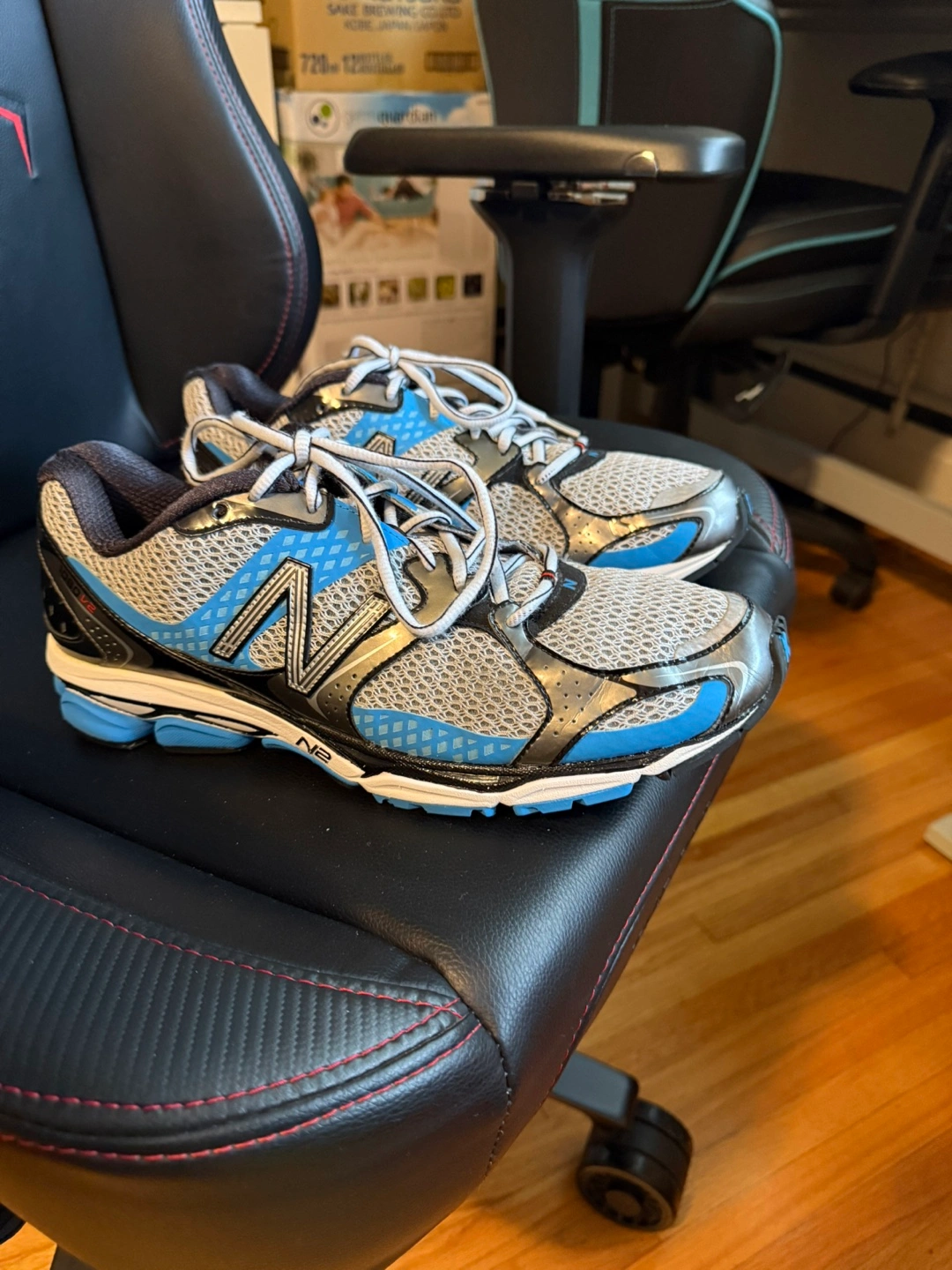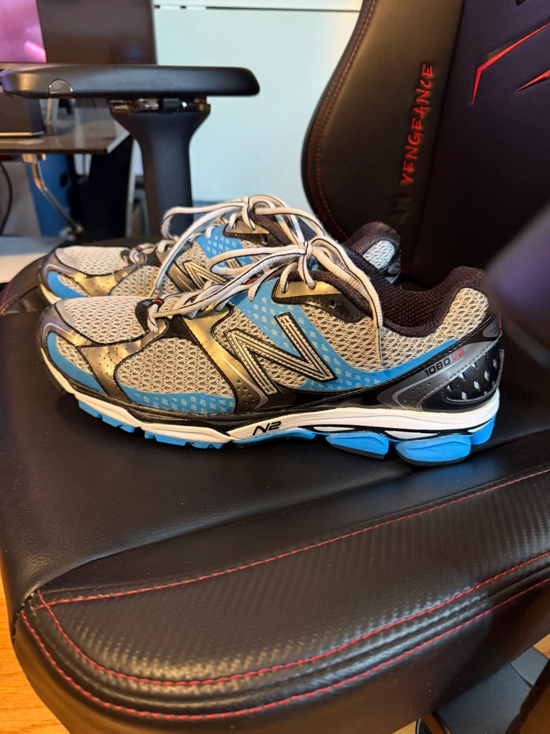I'm selling a pair of New Balance 1080 running shoes in size 11,5. These shoes are in used condition and have been worn, but still have plenty of life left for running or casual wear. The shoes feature a breathable upper, cushioned midsole, and durable outsole for comfort and support.