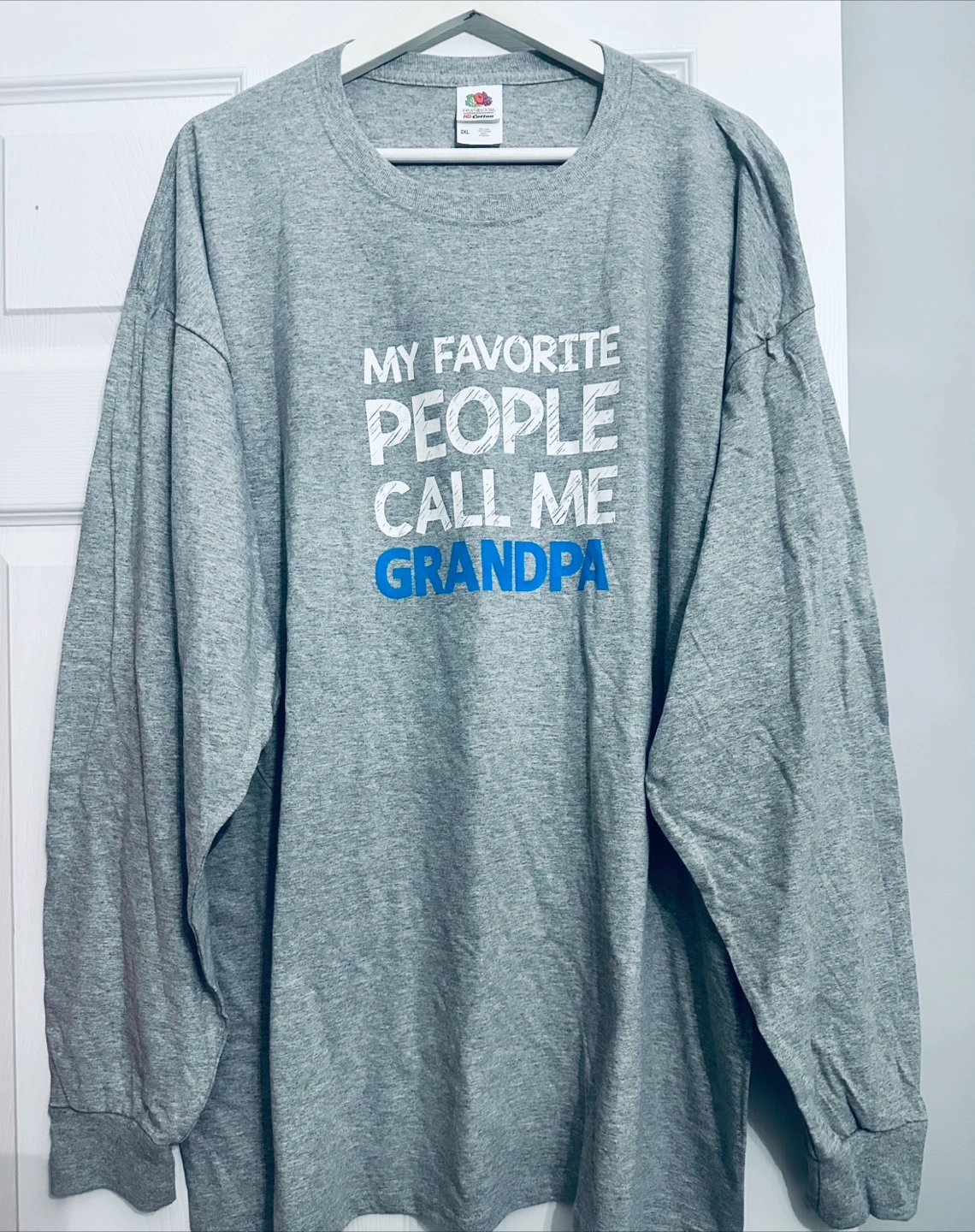 🇨🇦🍁Grey long-sleeved t-shirt. Has "My Favorite People Call Me Grandpa" printed on the front. A great shirt to cozy up in. Made of 90% cotton, 10% polyester.