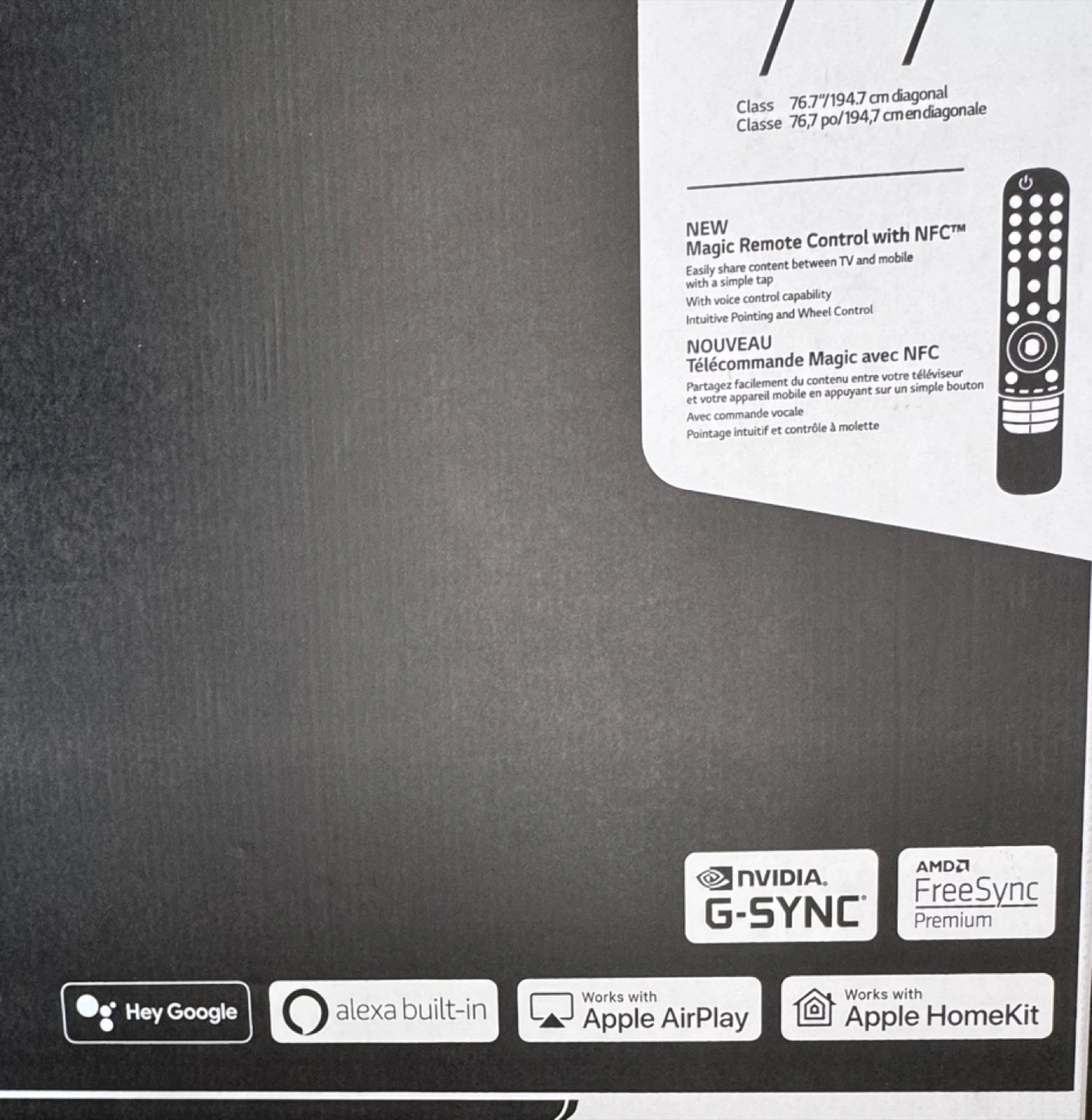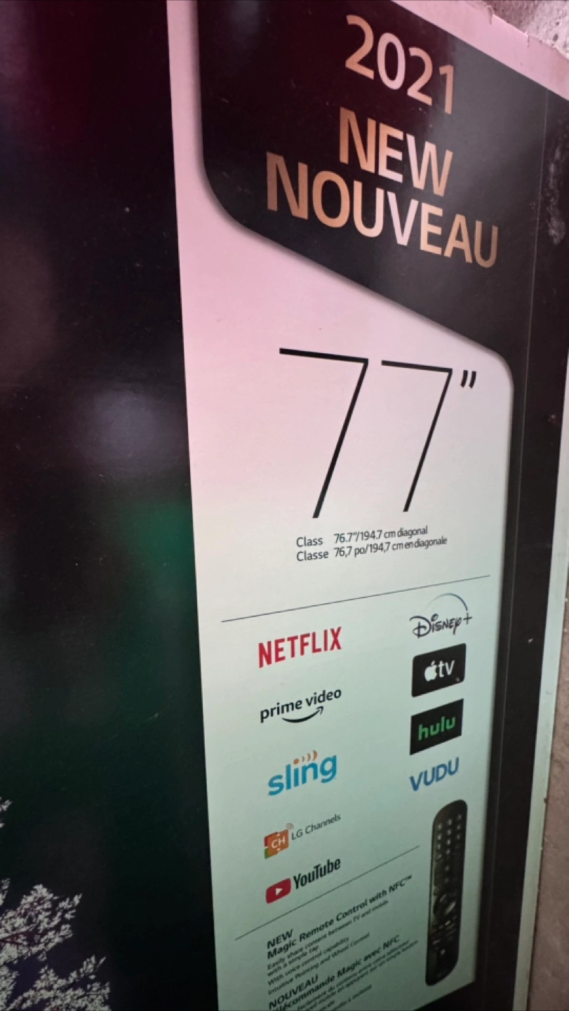 OLED TV 77-inch screen. It has access to streaming services, as well as the new Magic Remote Control. Perfect condition. I have an original box.