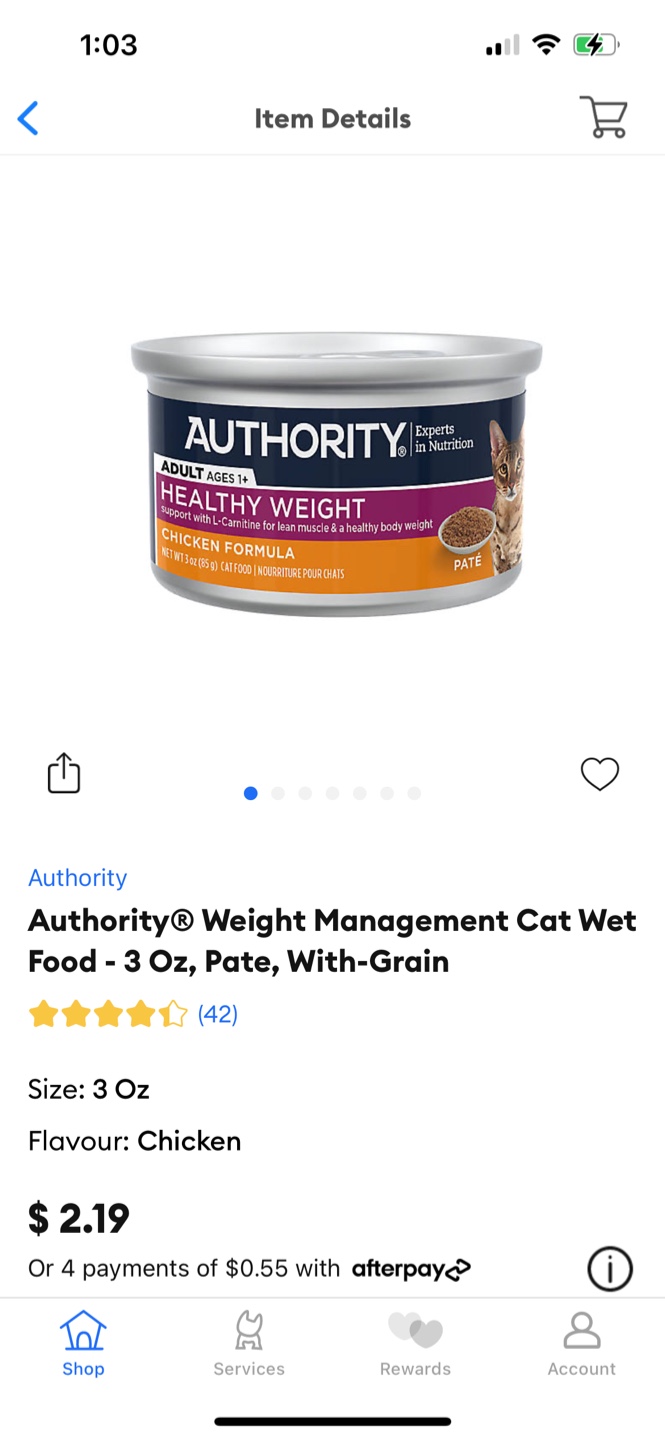 1 / 21 / 2Buy & SellAuthority wet cat food (12 cans)Authority wet cat food (12 cans)$1212 cans of authority cat food, chicken pate flavour. Best before Jul 20, 2025ConditionNewWHERE TO MEETCheck LocationView MapSELLERverifiedJessicaBay Street Corridor14610 reviews2 chats·0 favorites·19 viewsSEND CHAT TO SELLERHi Jessica! I’m interested in your listing.Hi Jessica! I’m interested in your listing.Get the Karrot app to chatSign In to chat