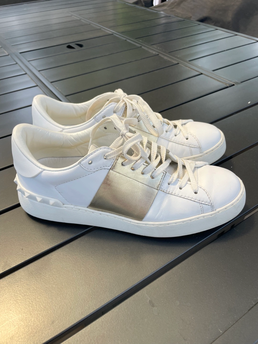 Step out in style with these chic white and gold women's sneakers. Perfect for casual outings, these shoes offer both comfort and elegance.