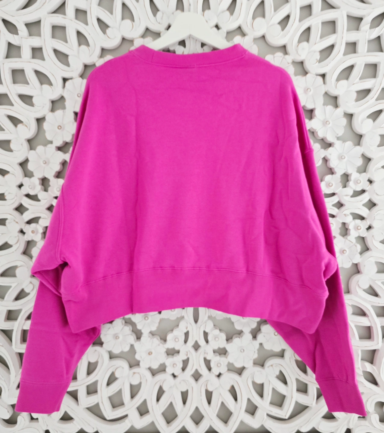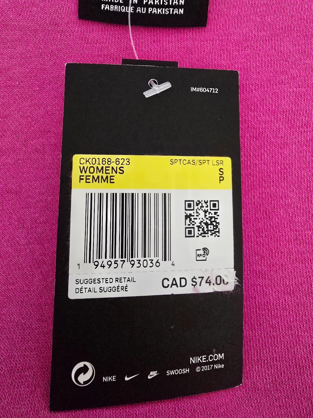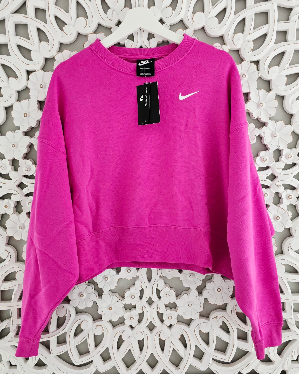69New with tag. Bright pink sweatshirt. Round neck. Long sleeves. White Nike logo.