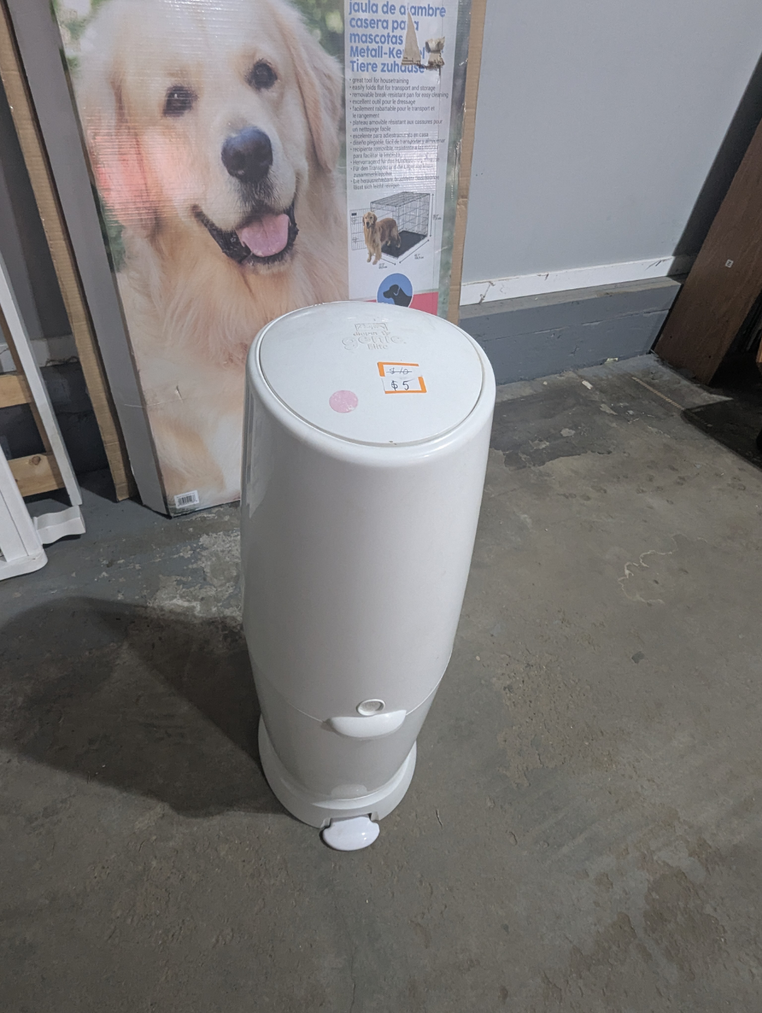 White diaper disposal system. Foot pedal for easy opening. A great item for a baby's nursery to keep things tidy and fresh. Does not include bags - but they are easily purchased at Walmart/Costco/superstore etc.