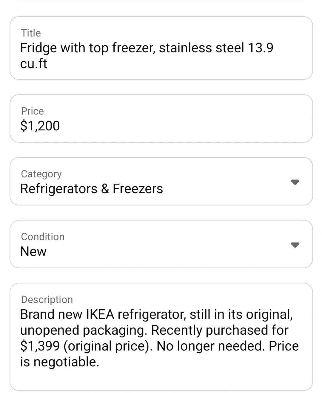 New Fridge with Top Freezer