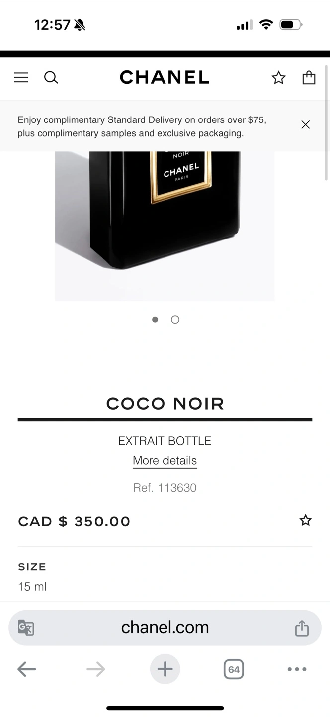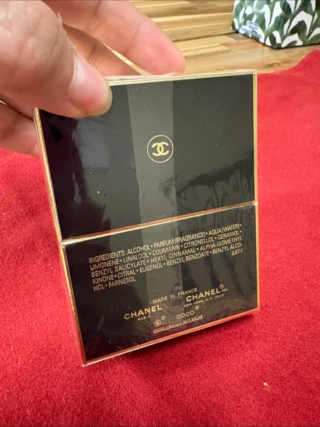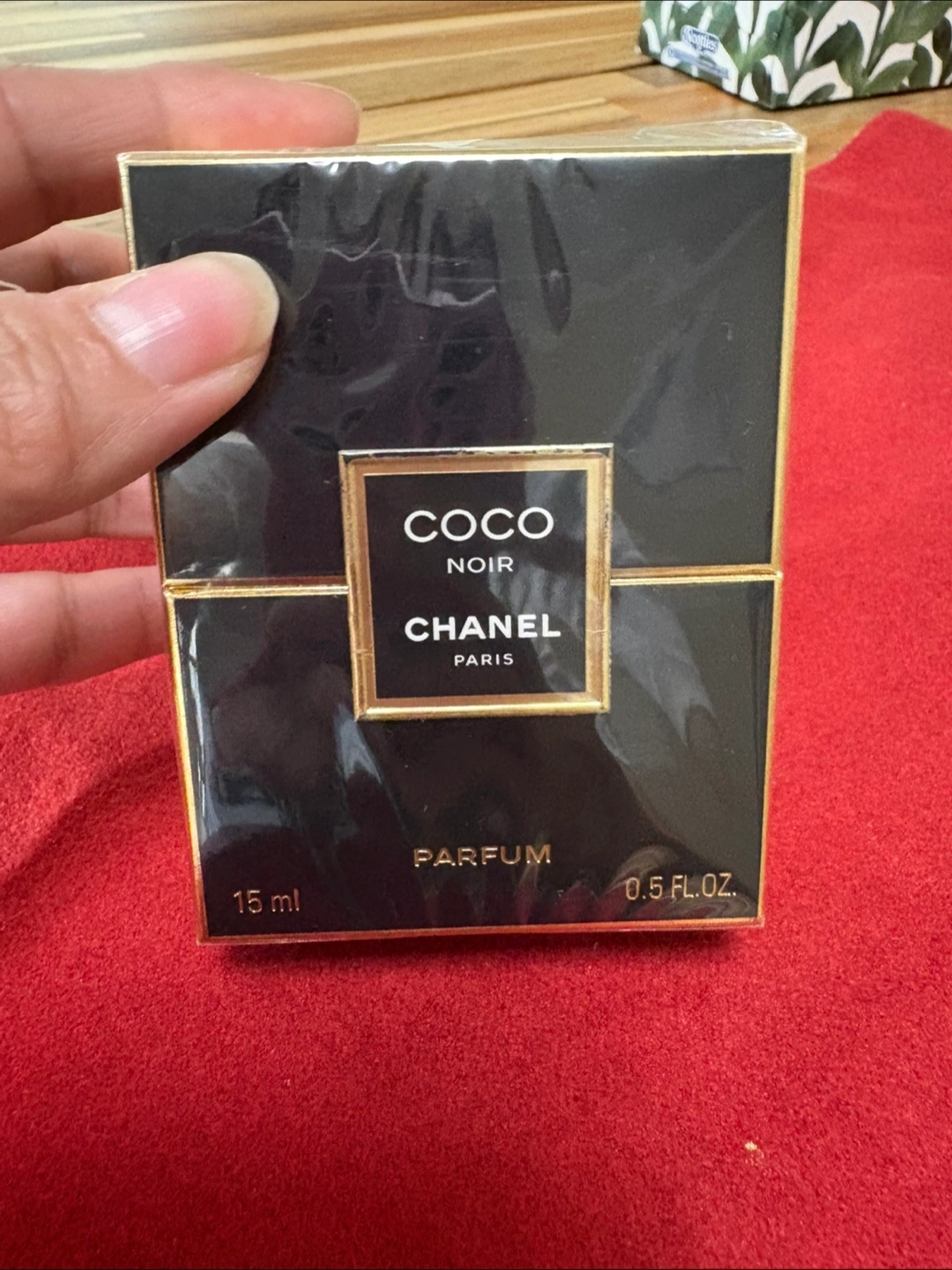 New, sealed Chanel Coco Noir parfum. A touch of this fragrance can add elegance to any situation, making you feel serene and sophisticated. Rectangular, black box with gold trim. Includes the Chanel logo on the back.original price 350