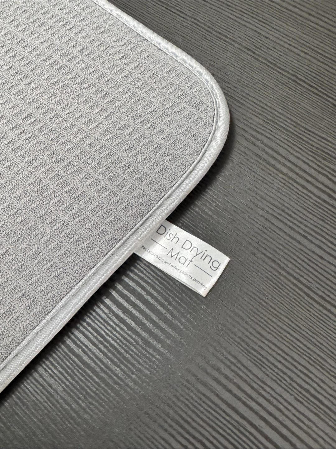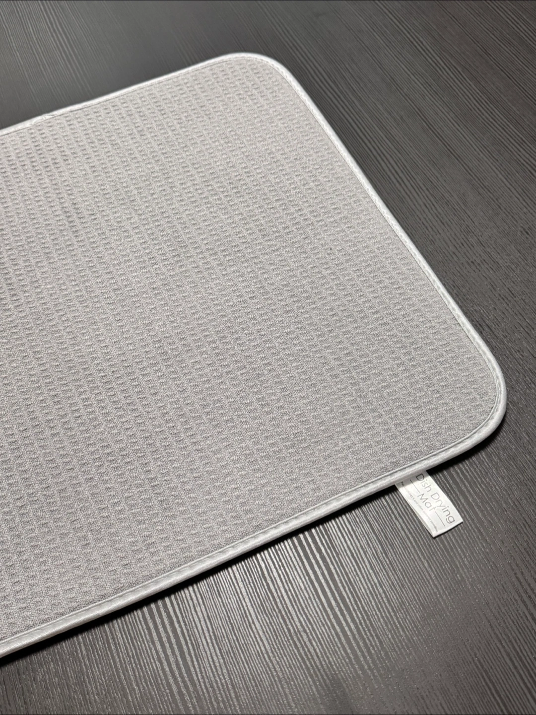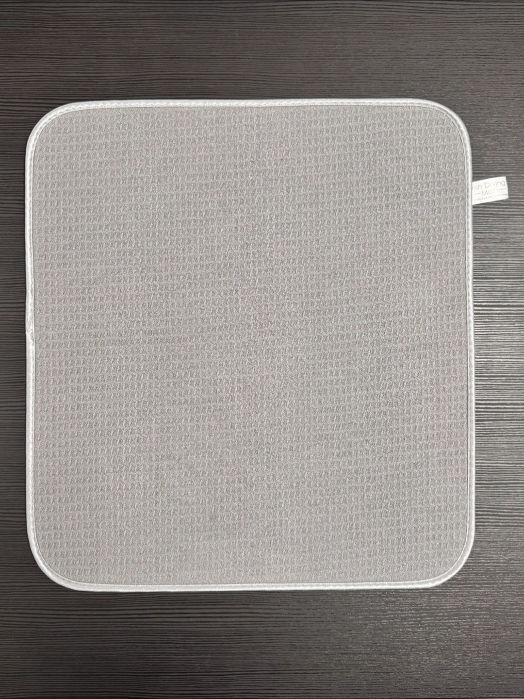 Rectangular mat, grey color. Features a patterned texture. Perfect for a quiet evening of doing dishes.
