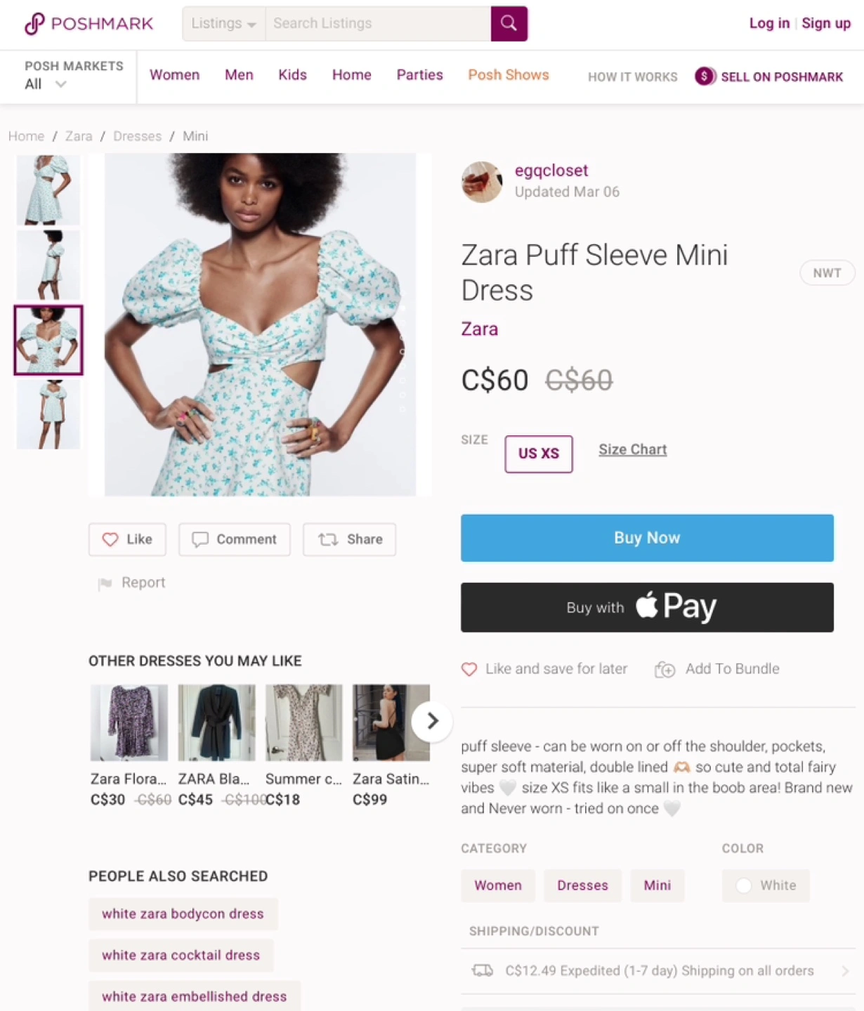Zara Puff Sleeve Mini Dress