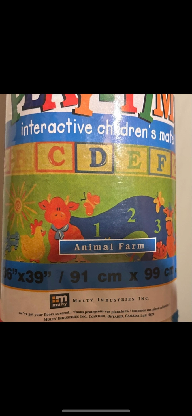 13An interactive children's play mat with animal graphics. A roll-up design for easy storage. Creating a safe play space can be a calming activity.