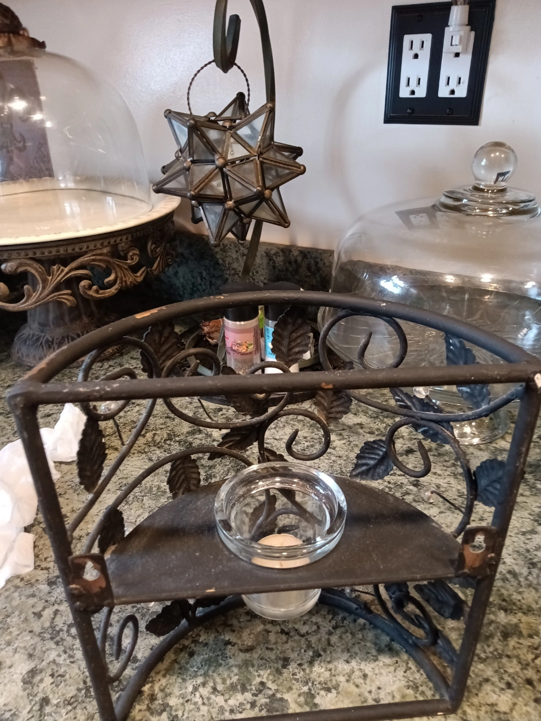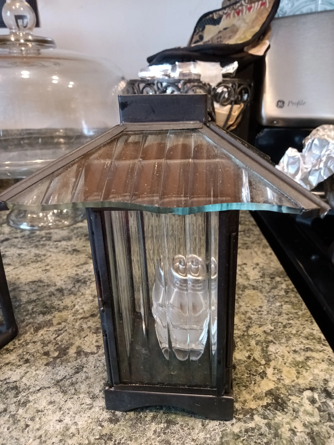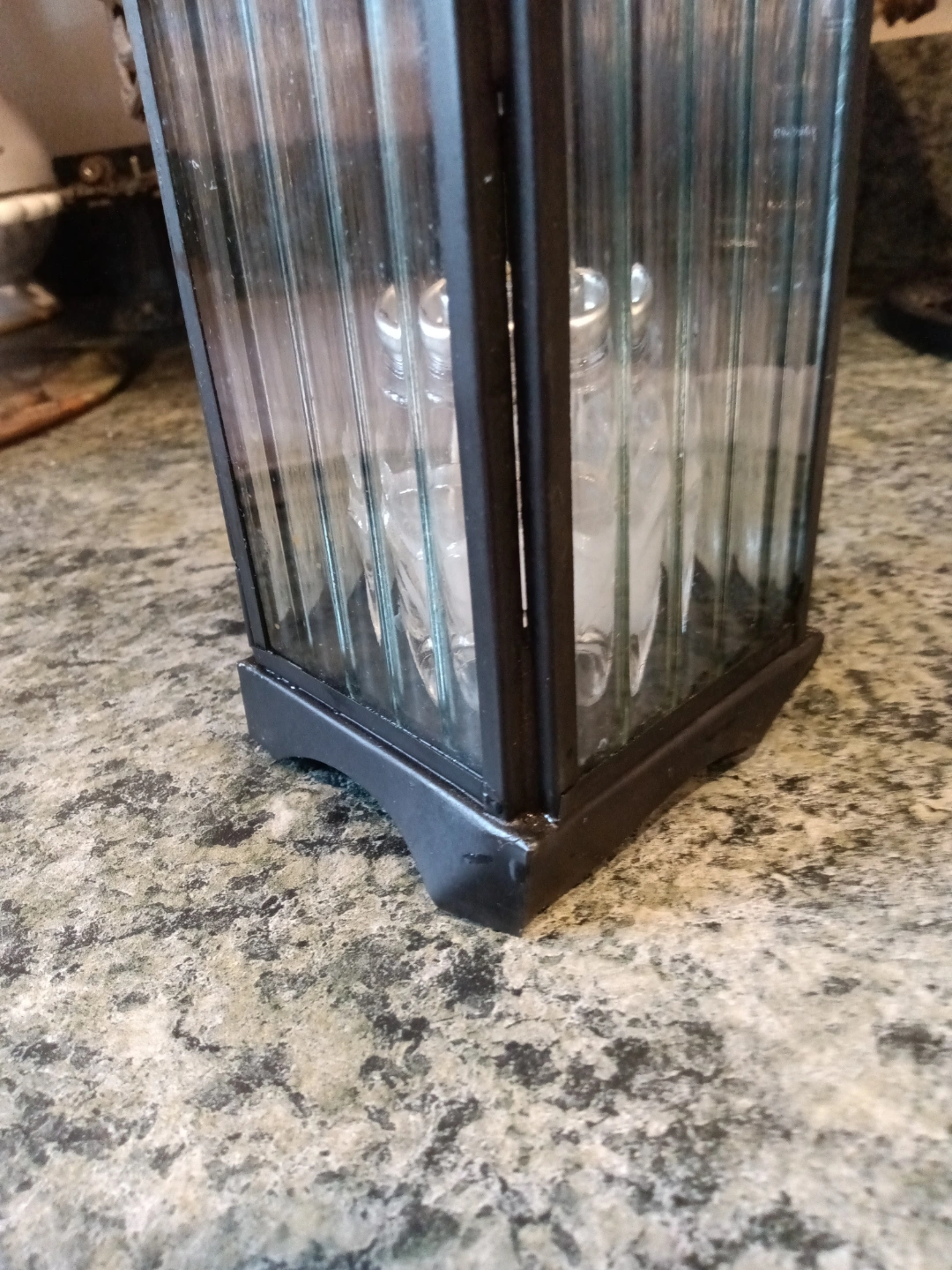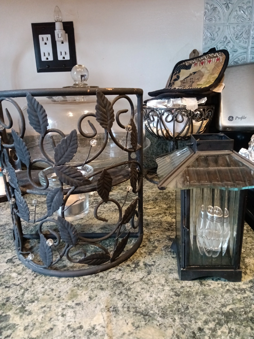 Shows minor wear, can be touched up with black metal paint. However little peeling of black paint is toward back, so once hung up u can't see it. Also a small black lantern with glass sides perfect addition to any room for a warm ambiance. Pickup in Maspeth, msg me if interested.