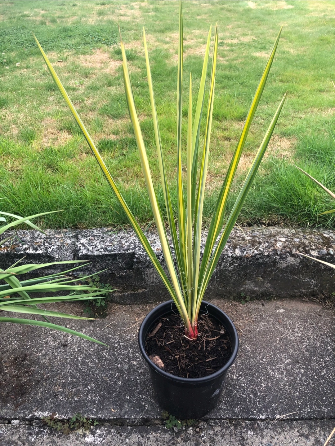 Plant with long, green leaves. Yellow stripes along the leaves. Adds some life and personality to your home’s curb appeal.