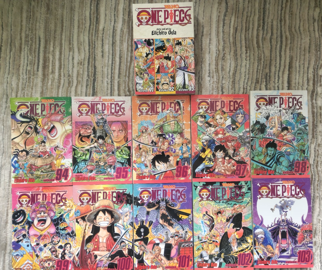 $75 for bundle $8 per book $12 for omnibus Open to offers A collection of One Piece manga volumes. One omnibus from volume 91-93 and 10 singles from volume 94-103. They are lightly used as I use them for decorations. Original price $14.67 per book $22.60 for omnibus $169.30 total