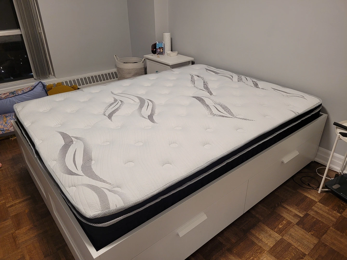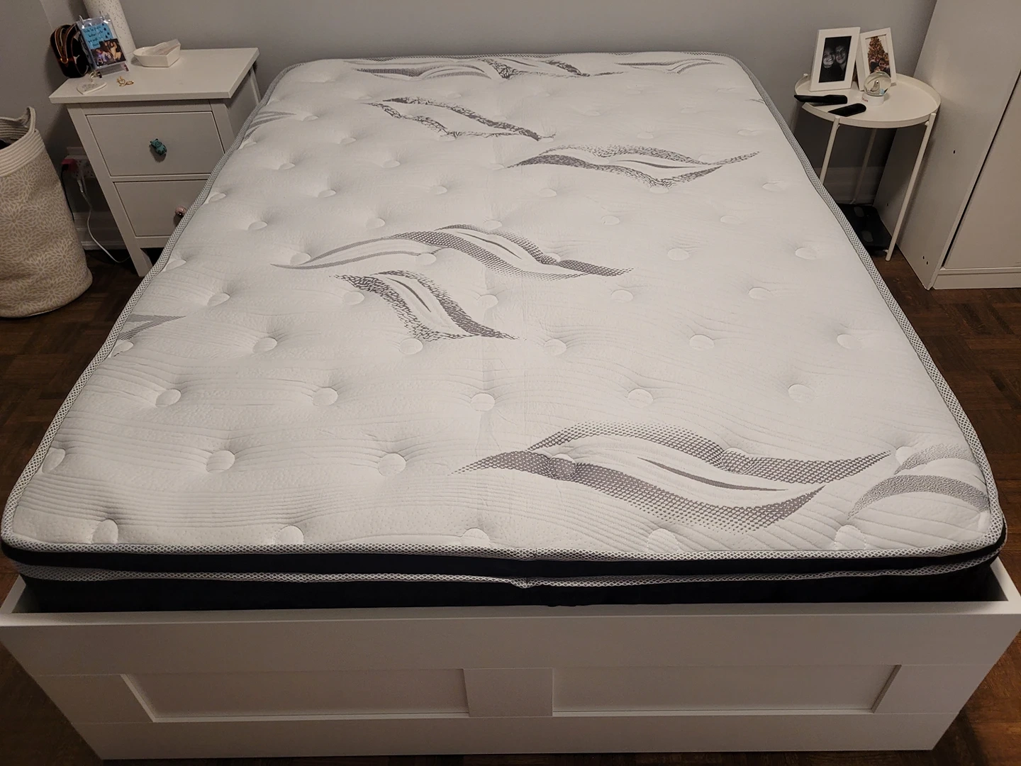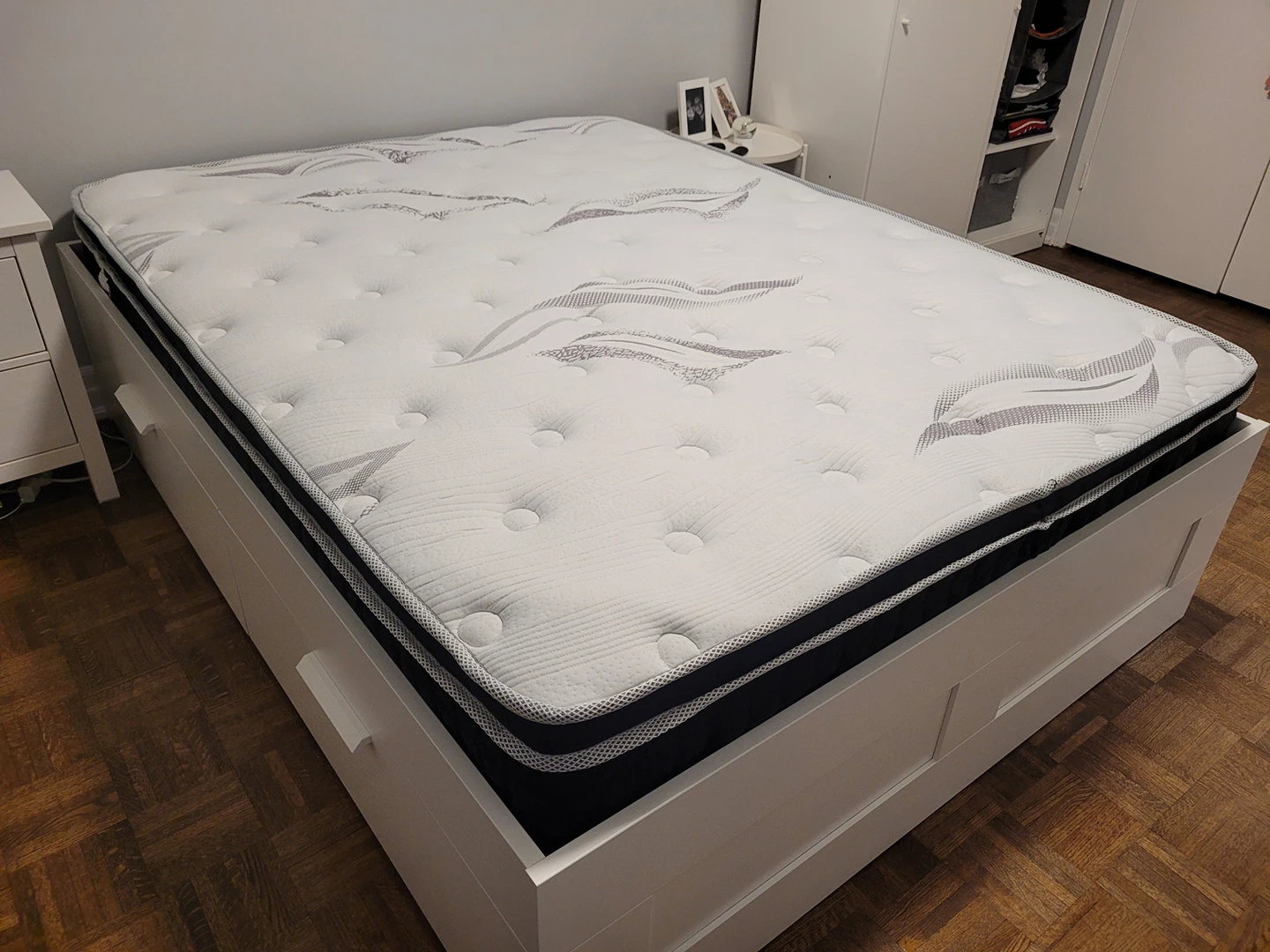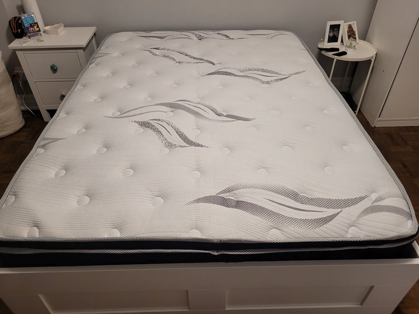 Queen Mattress medium firm. Selling it because it is less firm than originally described and did not work for us. Used for 4 nights only.