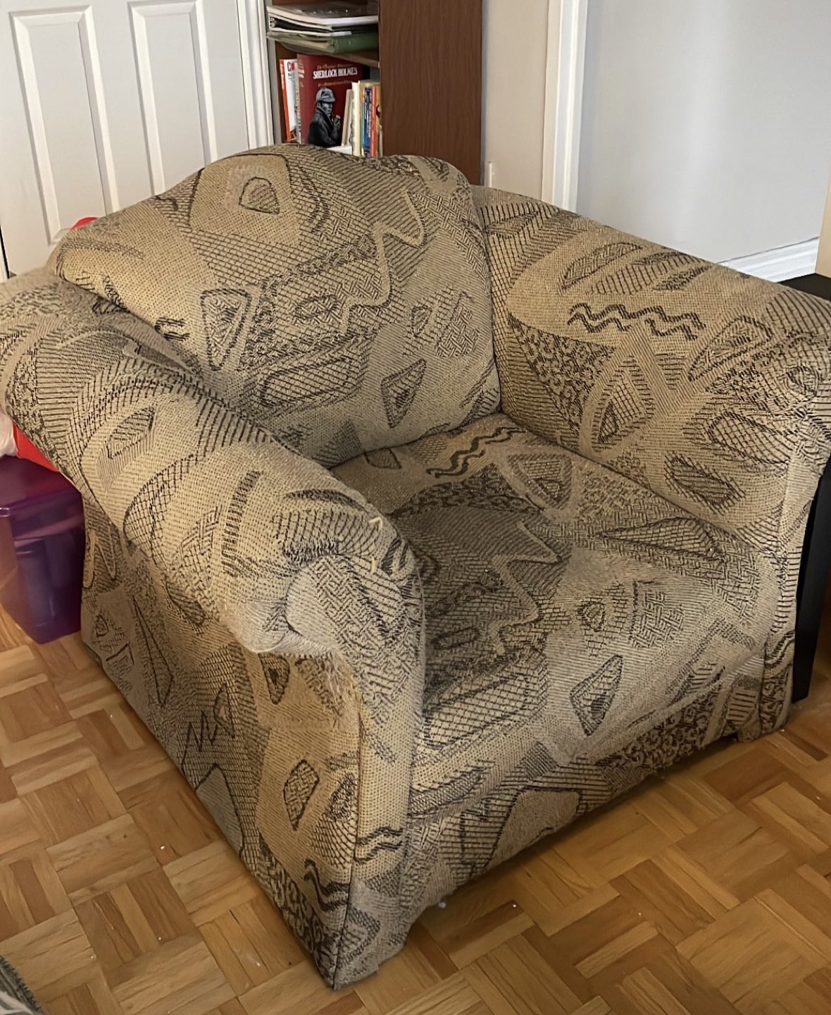 Free armchair. Itโs in good condition from a pest-free, smoke-free home. Has been exposed to cat fur, but there are no scratch/shred marks