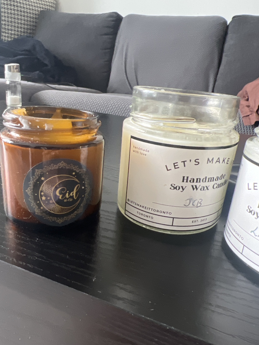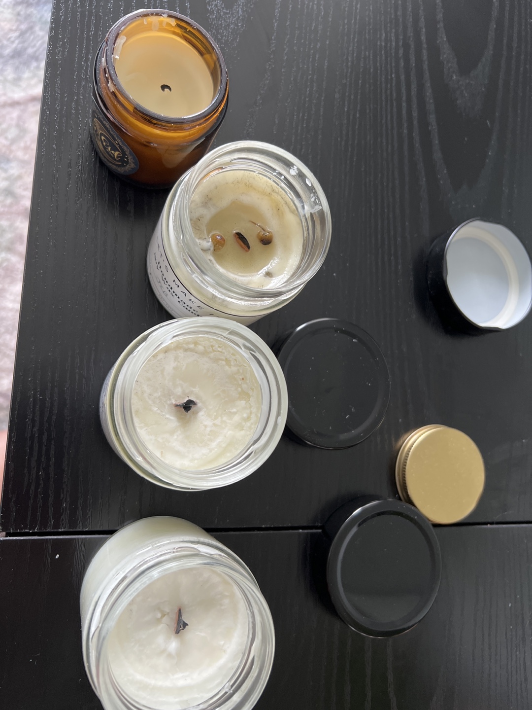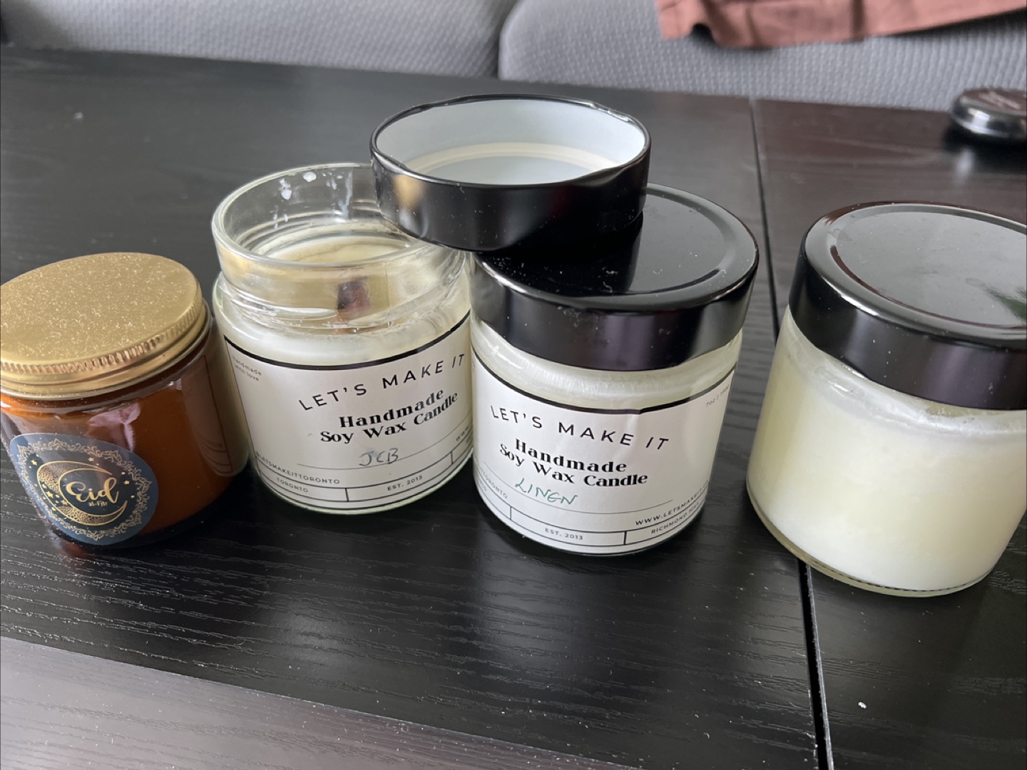 Soy wax candles in glass jars. Candle scents include linen, Japanese cherry blossom, as well as other scents. These candles are perfect for setting a relaxing mood.