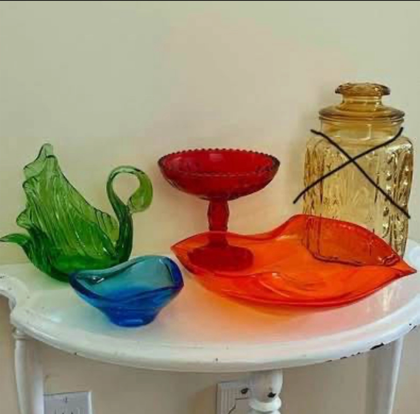 Add a touch of vintage charm to your home with this Mid-Century Modern glass lot. The collection includes 4 pieces in different colors and designs, perfect for display or use.