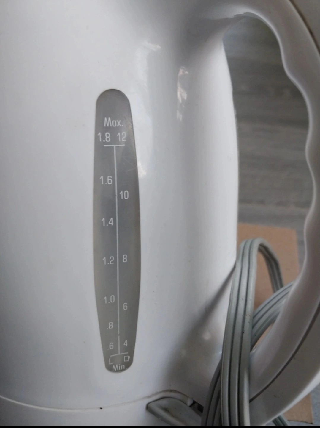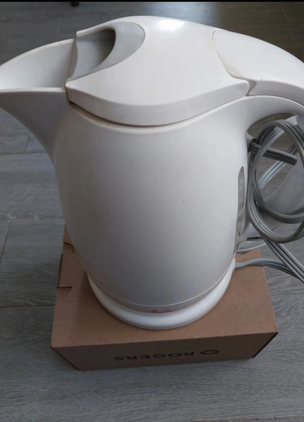 *Cash and pick up ONLY at location shown on ad. No trades. Non-negotiable. Electric kettle. White in colour. Features a handle and a visible water level indicator. Equipped with a cord. Enjoy a calming cup of tea on a cozy day.