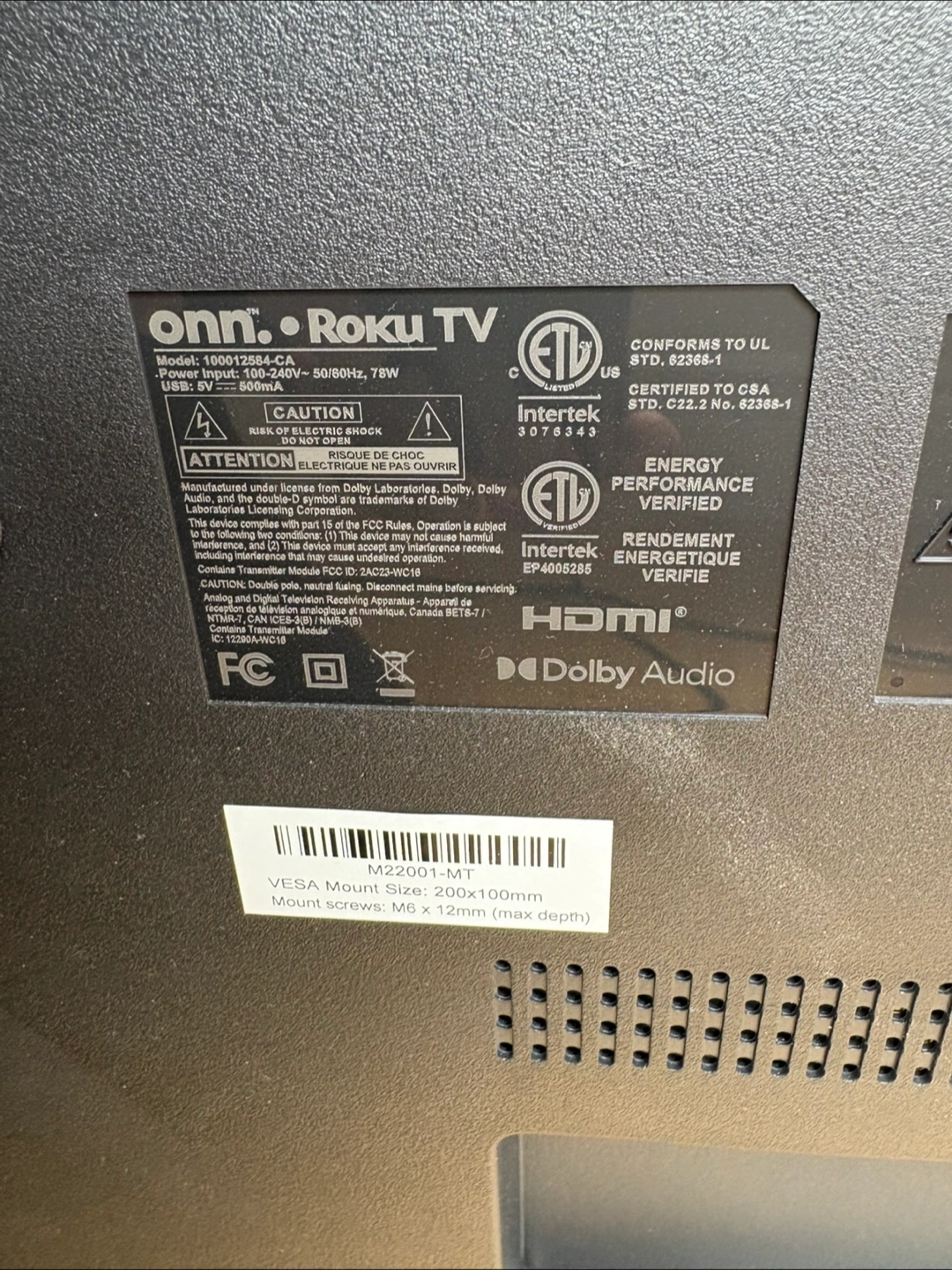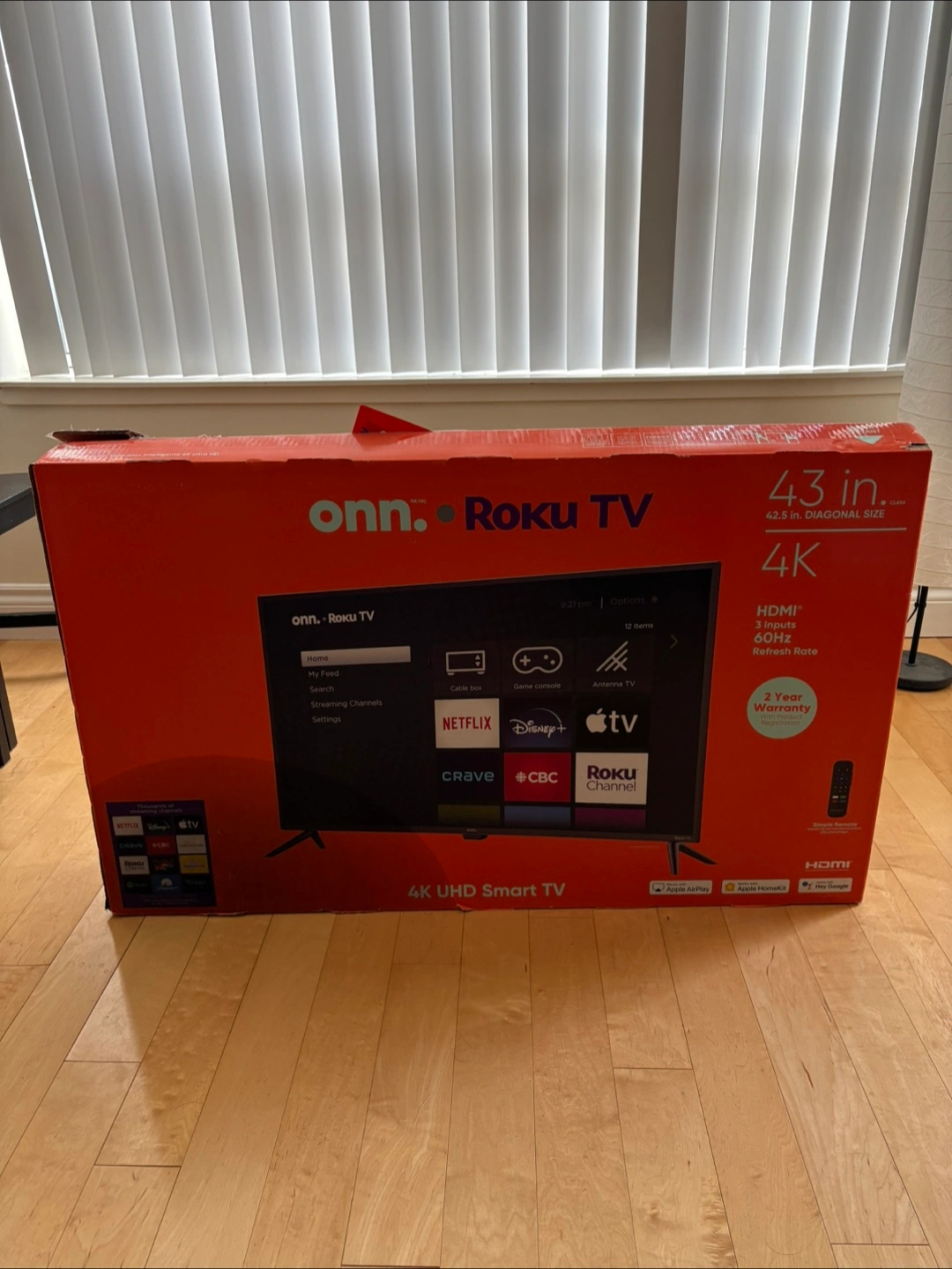 Selling an onn. 43" 4K UHD HDR Roku Smart TV (Model 100012584-CA-Black), 4K, 3 HDMI, 60 Hz